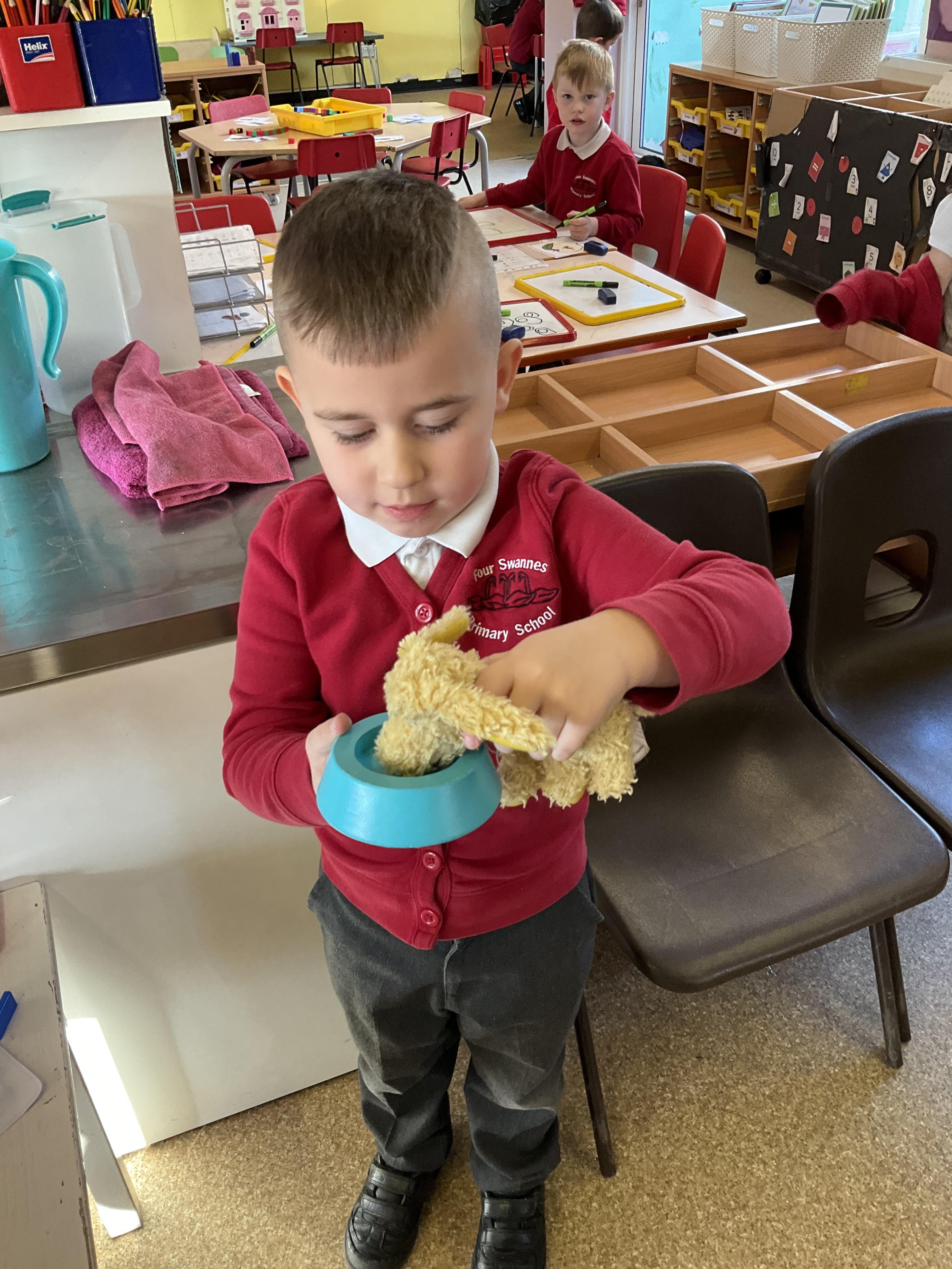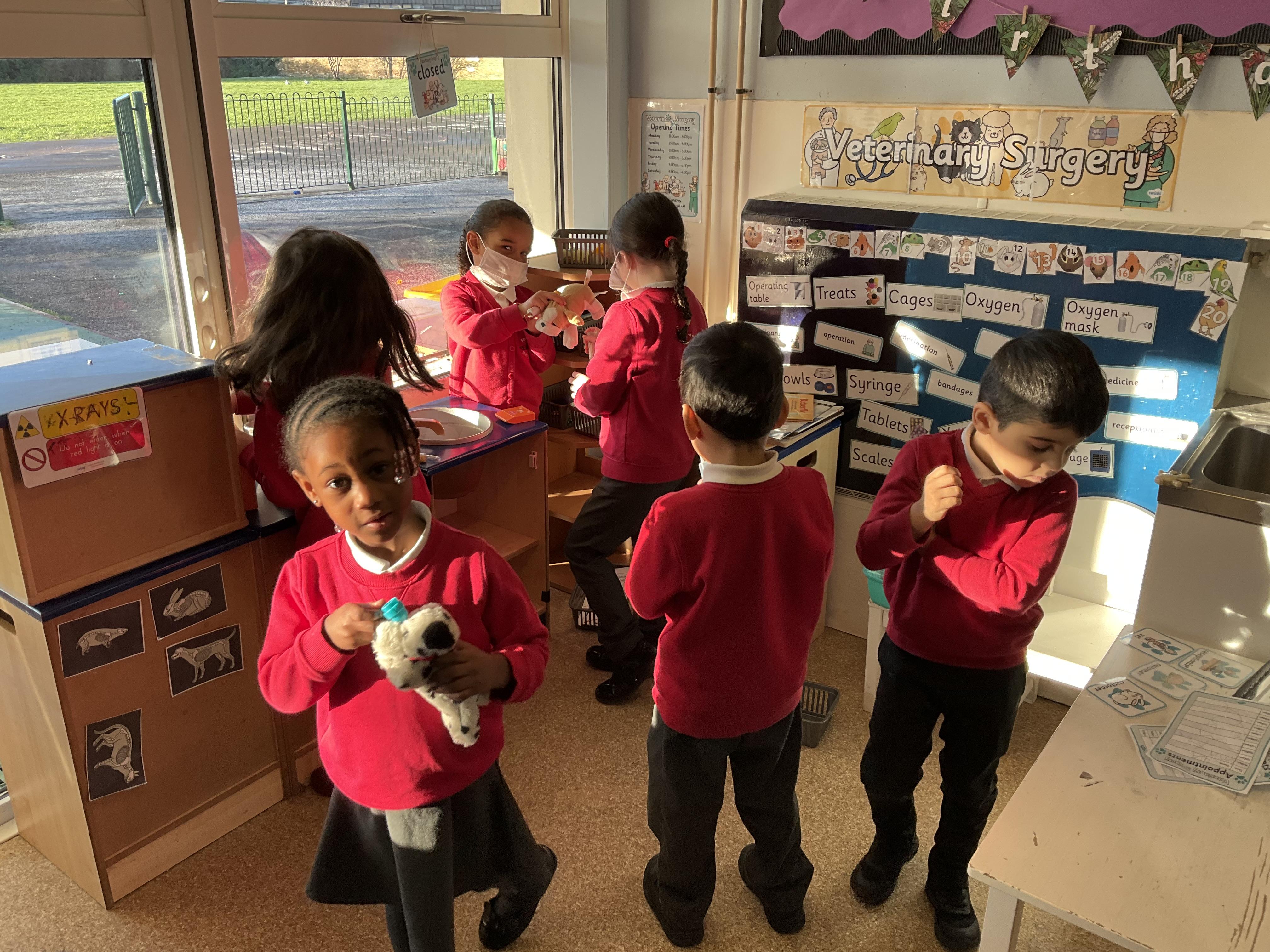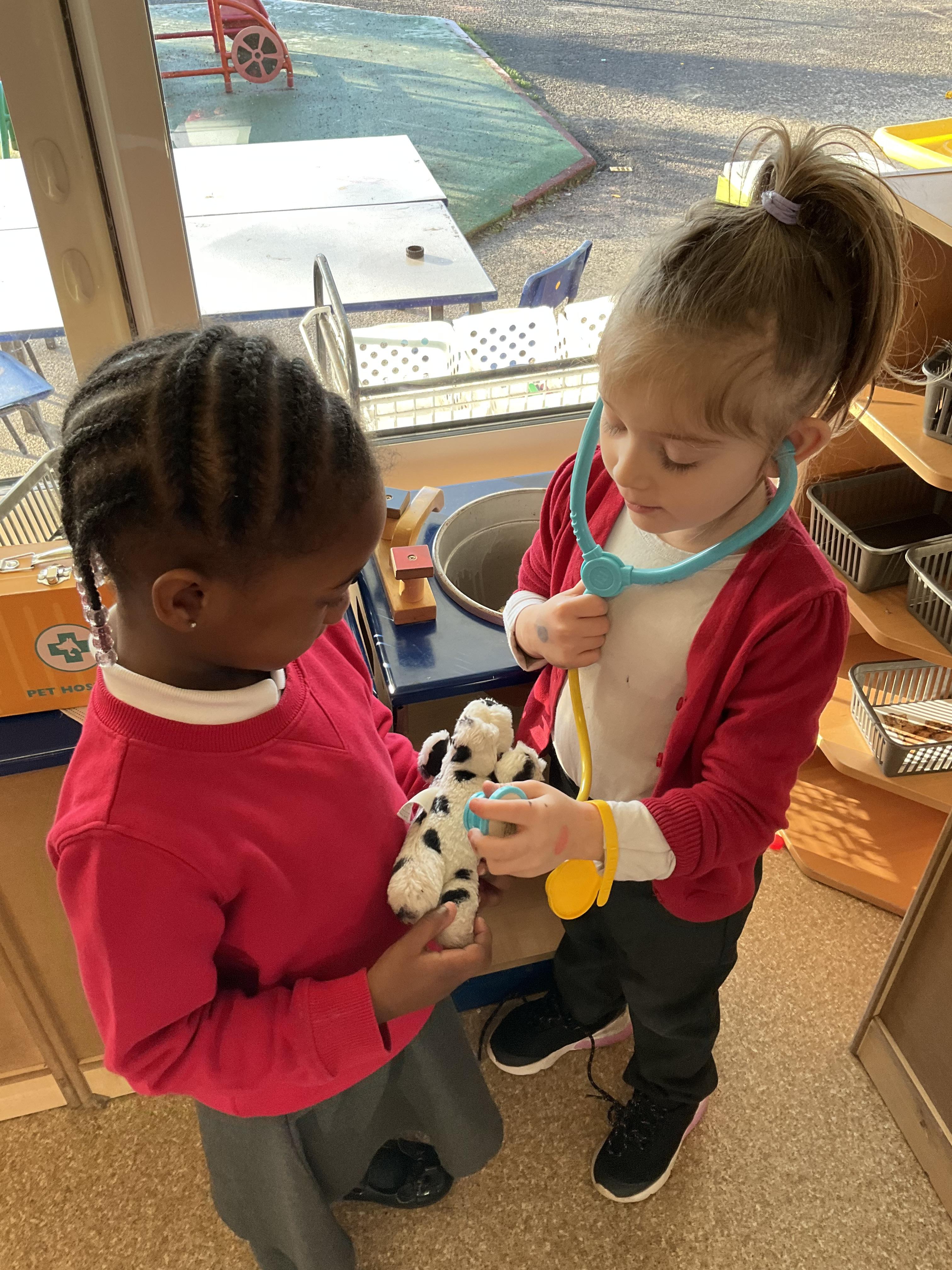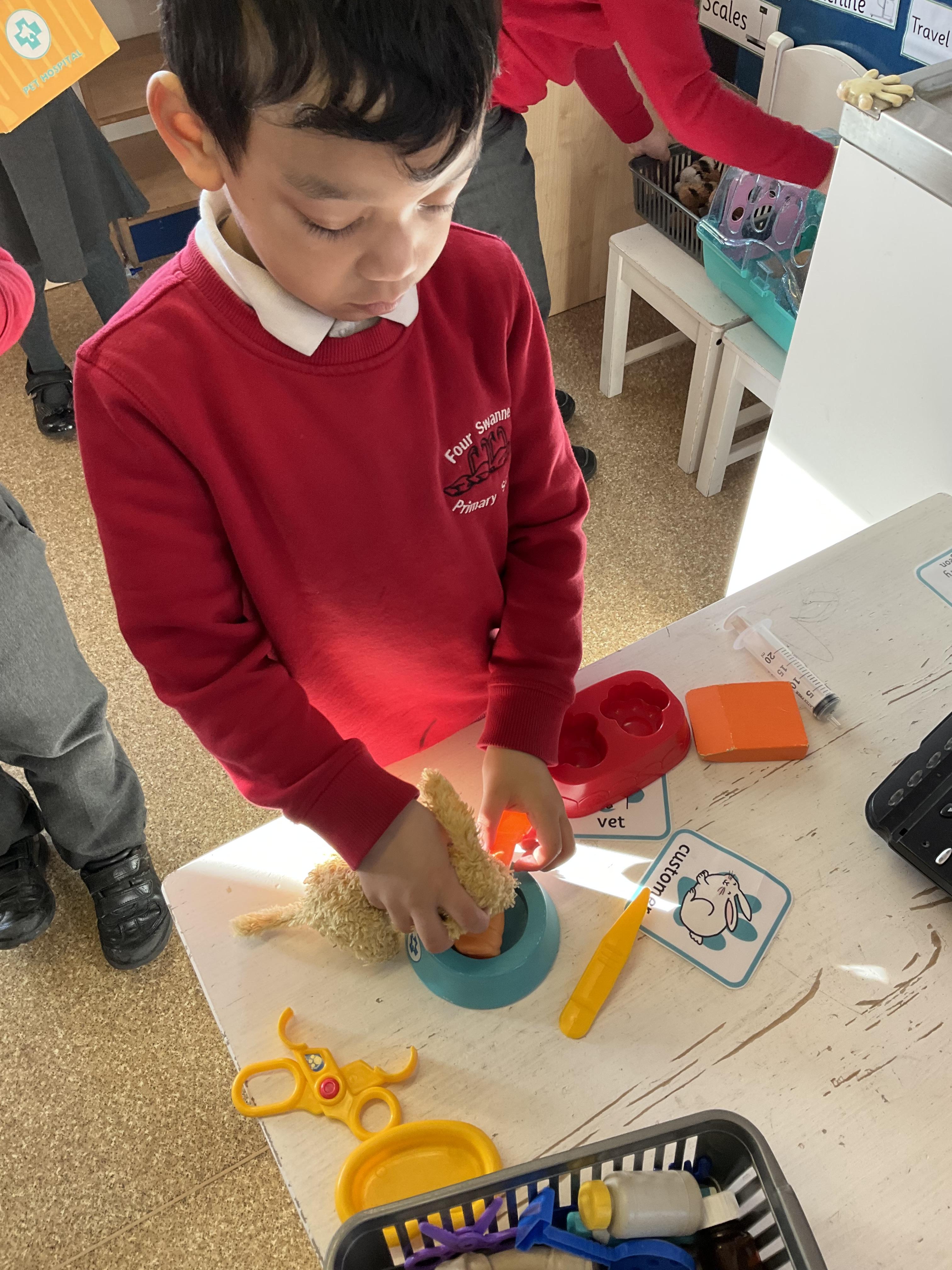 This week the children have been focusing on People Who Help Us. They have been learning about different People Who Help Us and their jobs. The children have also learnt about the vets in particular, who goes to the vets and what happens when you visit the vets. The children have been watching videos to develop their understanding. The children have enjoyed their new role play area this week which is the vets.