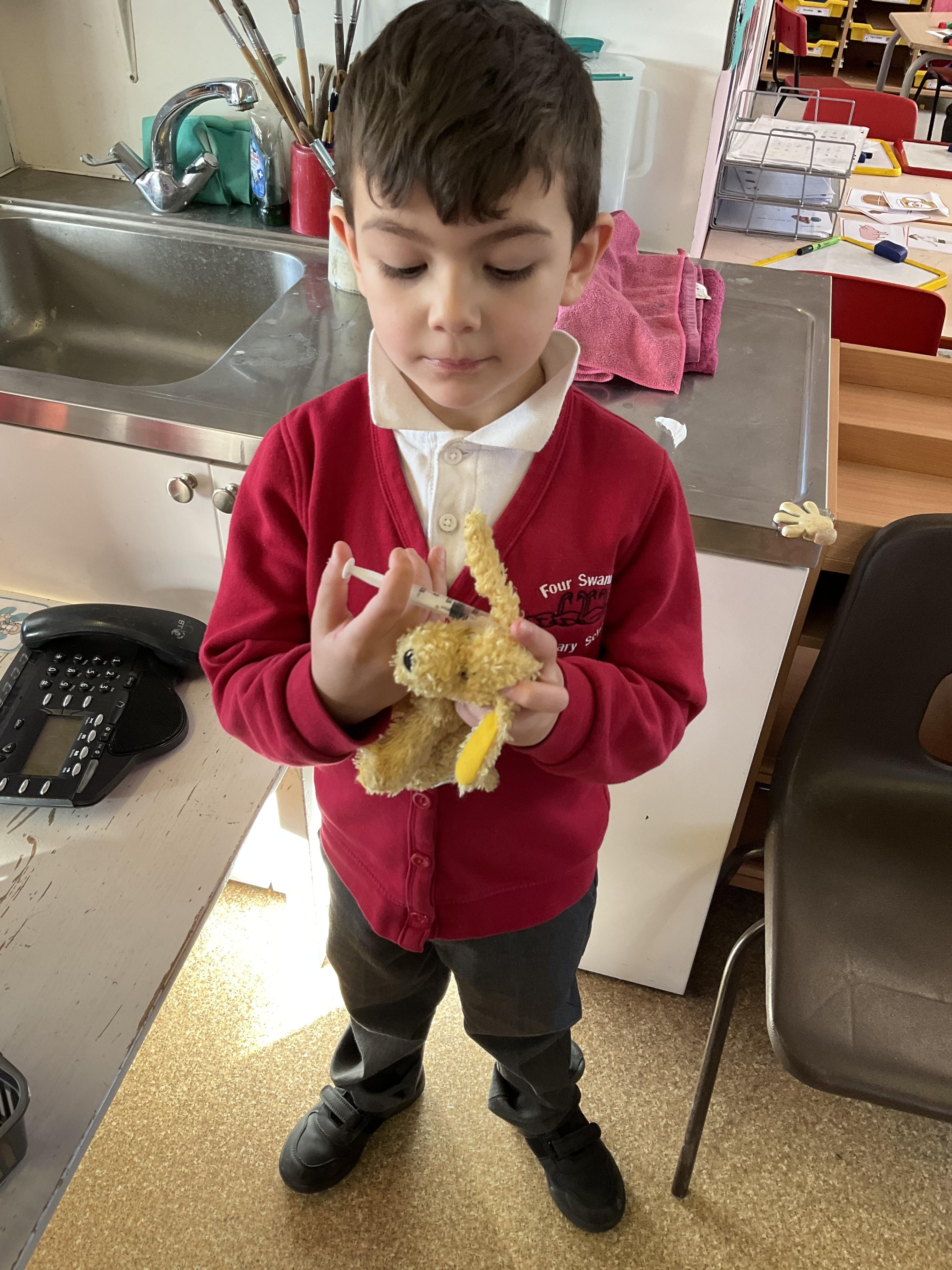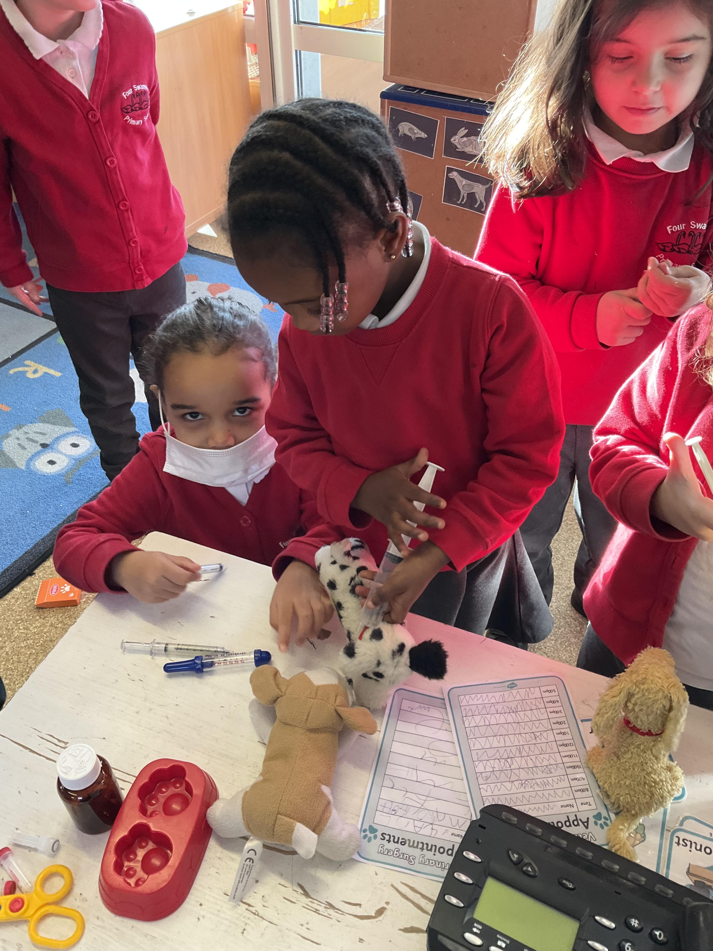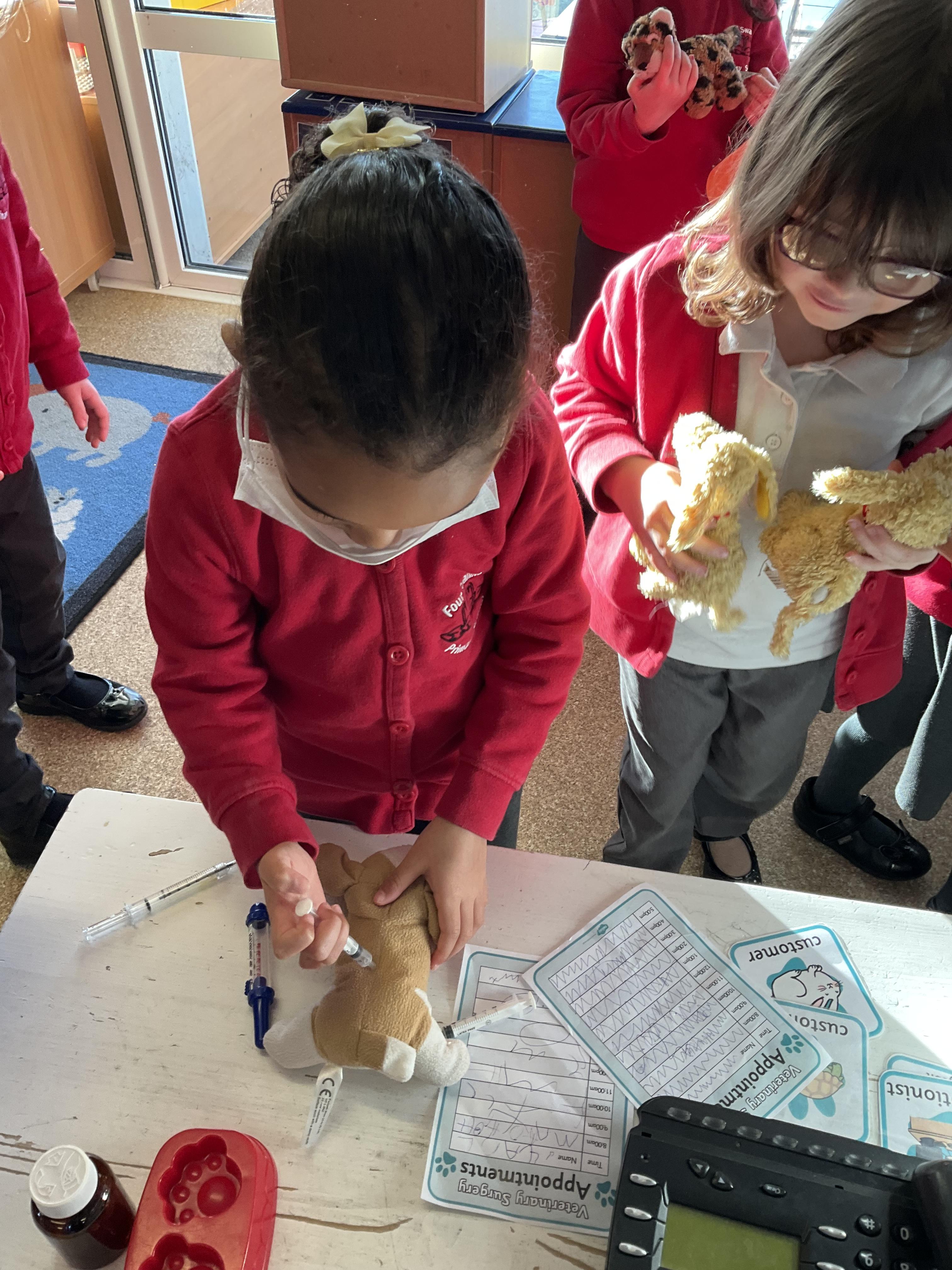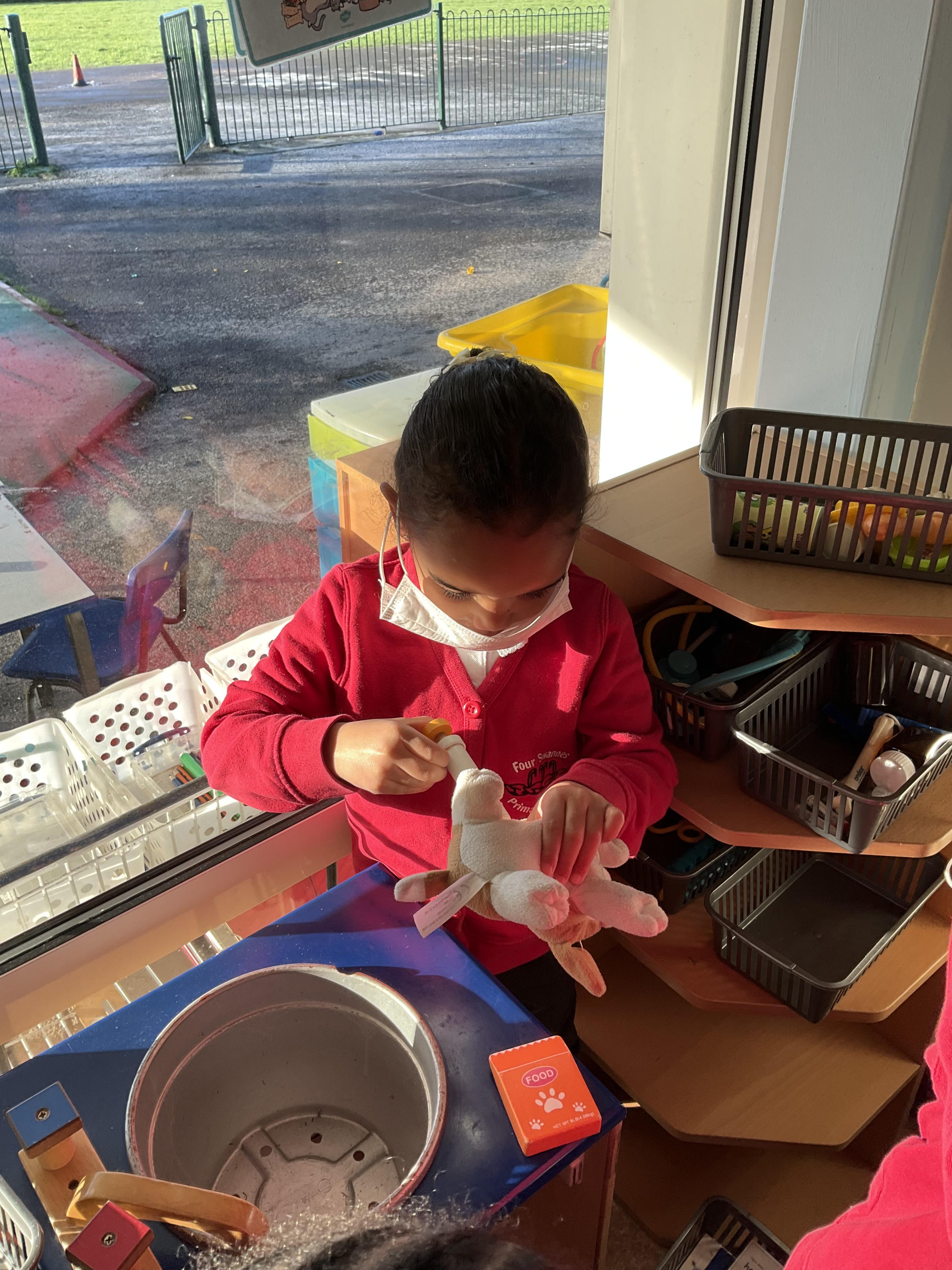 This week the children have been focusing on People Who Help Us. They have been learning about different People Who Help Us and their jobs. The children have also learnt about the vets in particular, who goes to the vets and what happens when you visit the vets. The children have been watching videos to develop their understanding. The children have enjoyed their new role play area this week which is the vets.