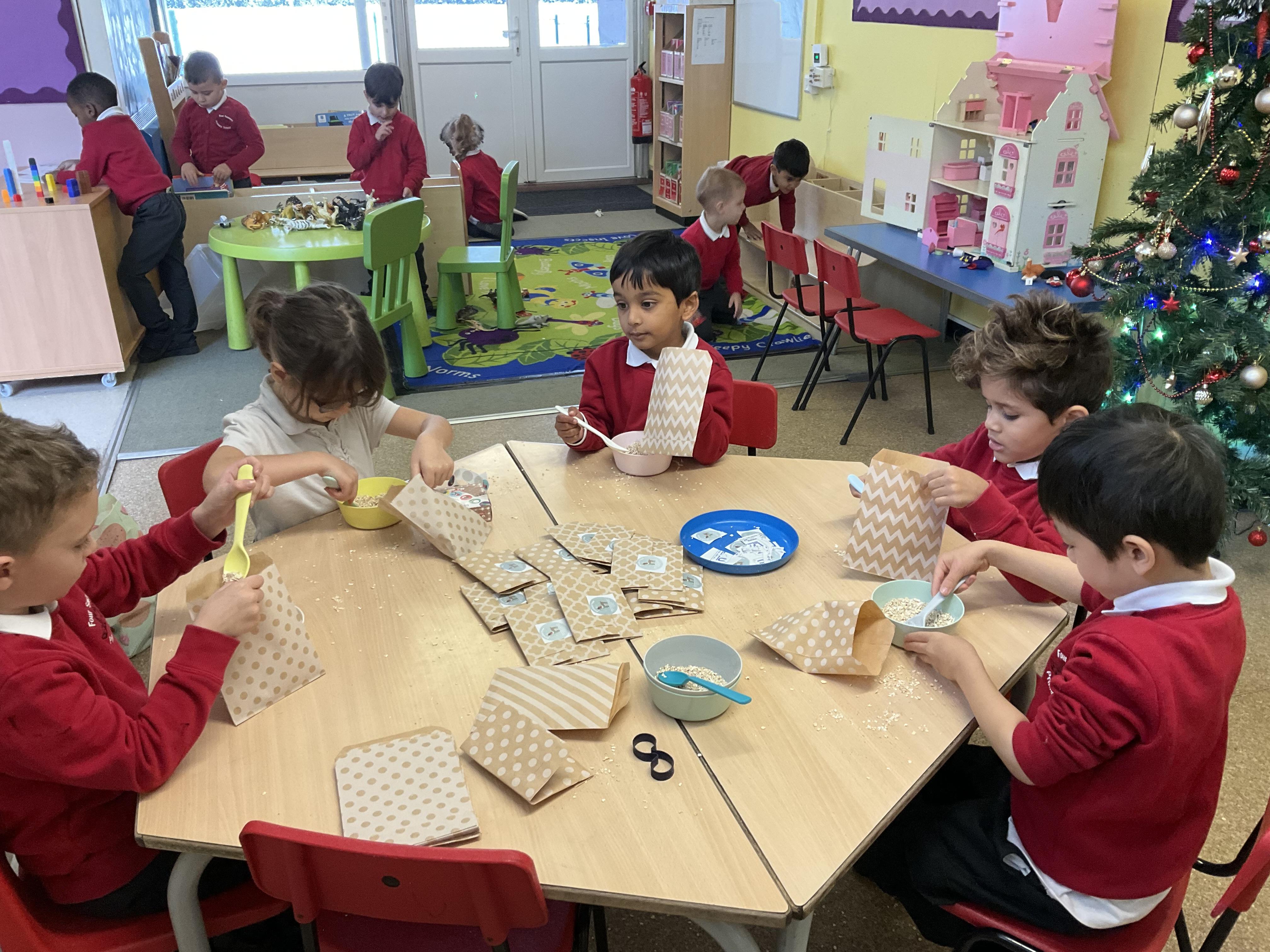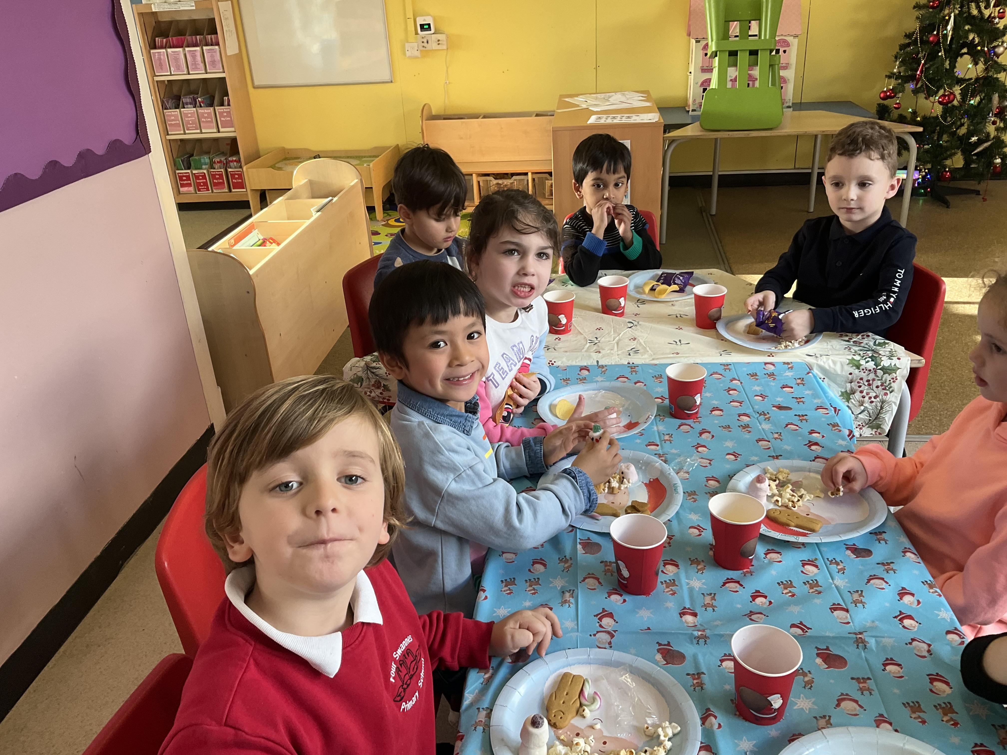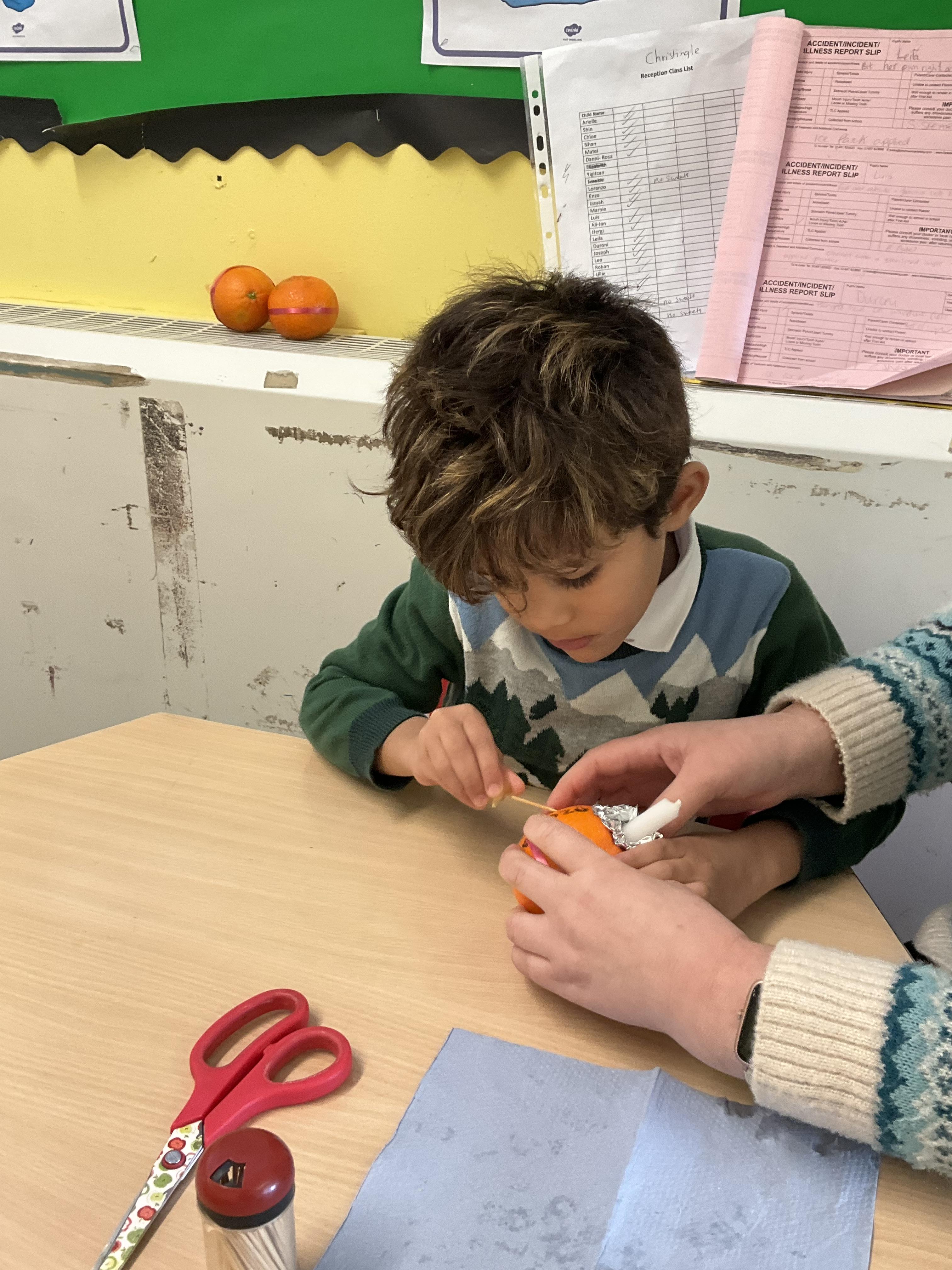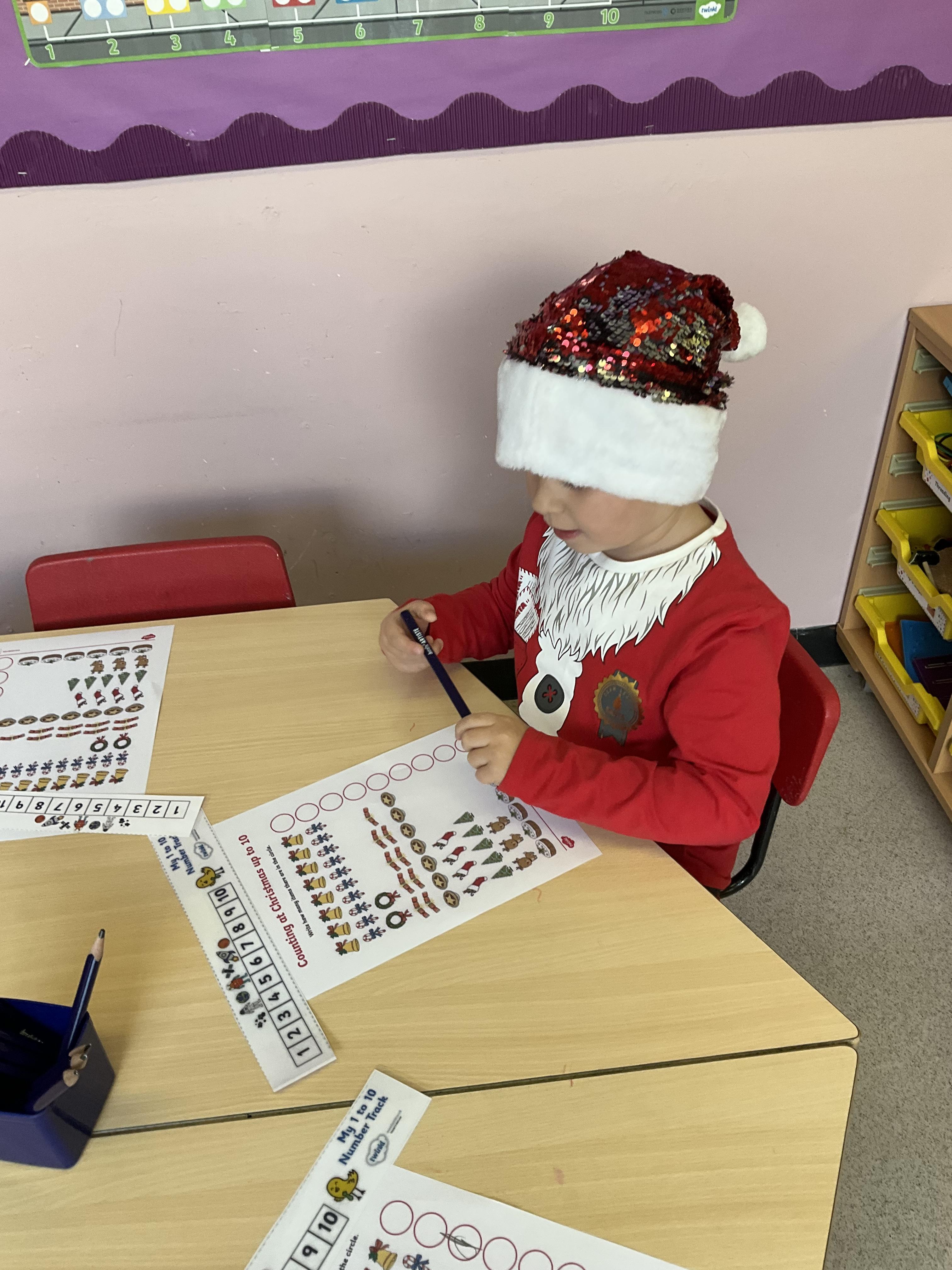 This week the children have been preparing for the Christmas fair. They have been busy making reindeer food and a christmas ornament for their christmas tree. The children have also been listening to christmas music and taking part in christmas maths. They have been busy decorating a christmas tree on the computer. The children have also been busy making a Christingle ready for the Christingle service and enjoyed Christmas dinner on Christmas jumper day. They have been busy making a christmas party hat to wear whilst having their Christmas dinner.