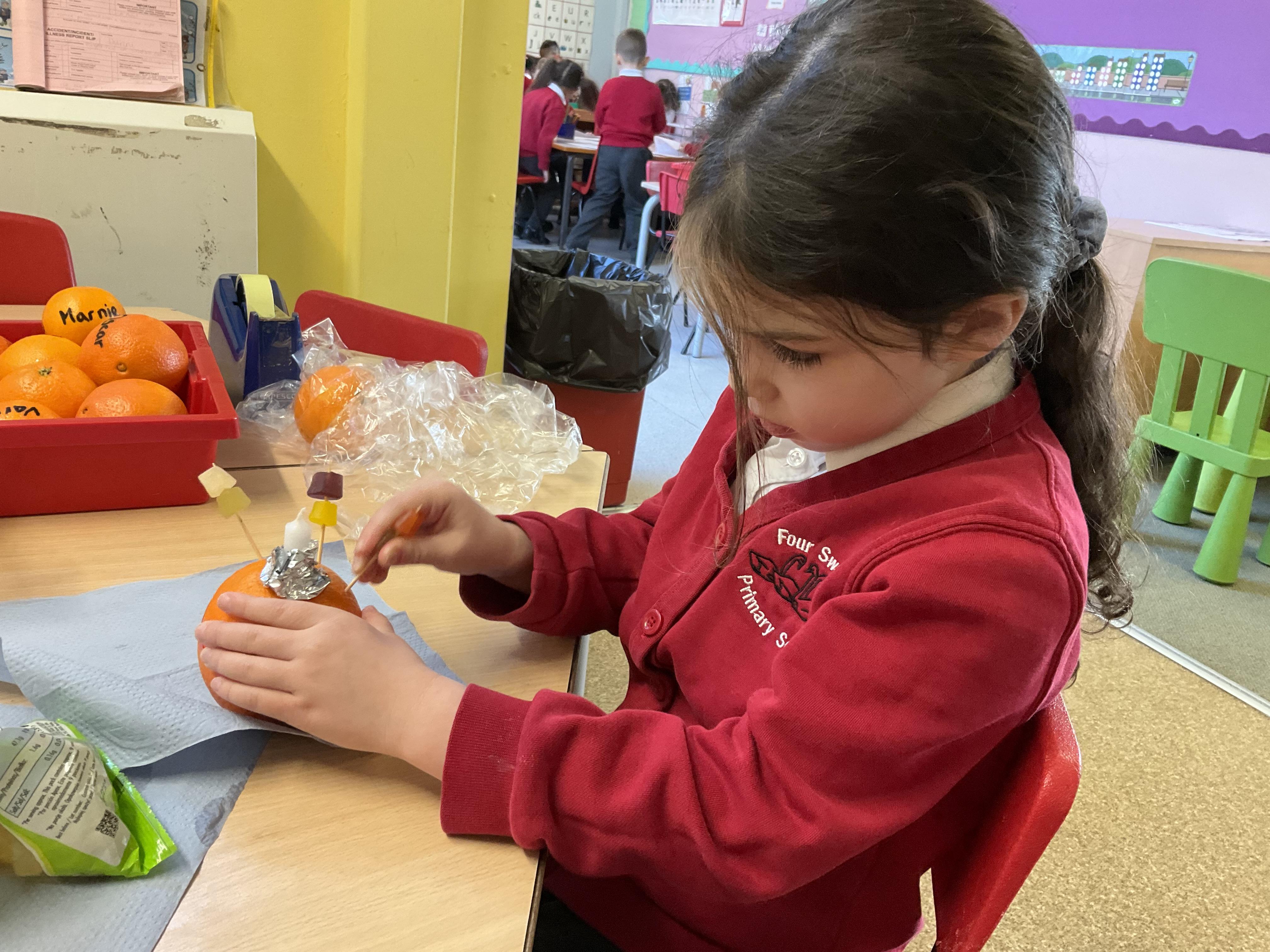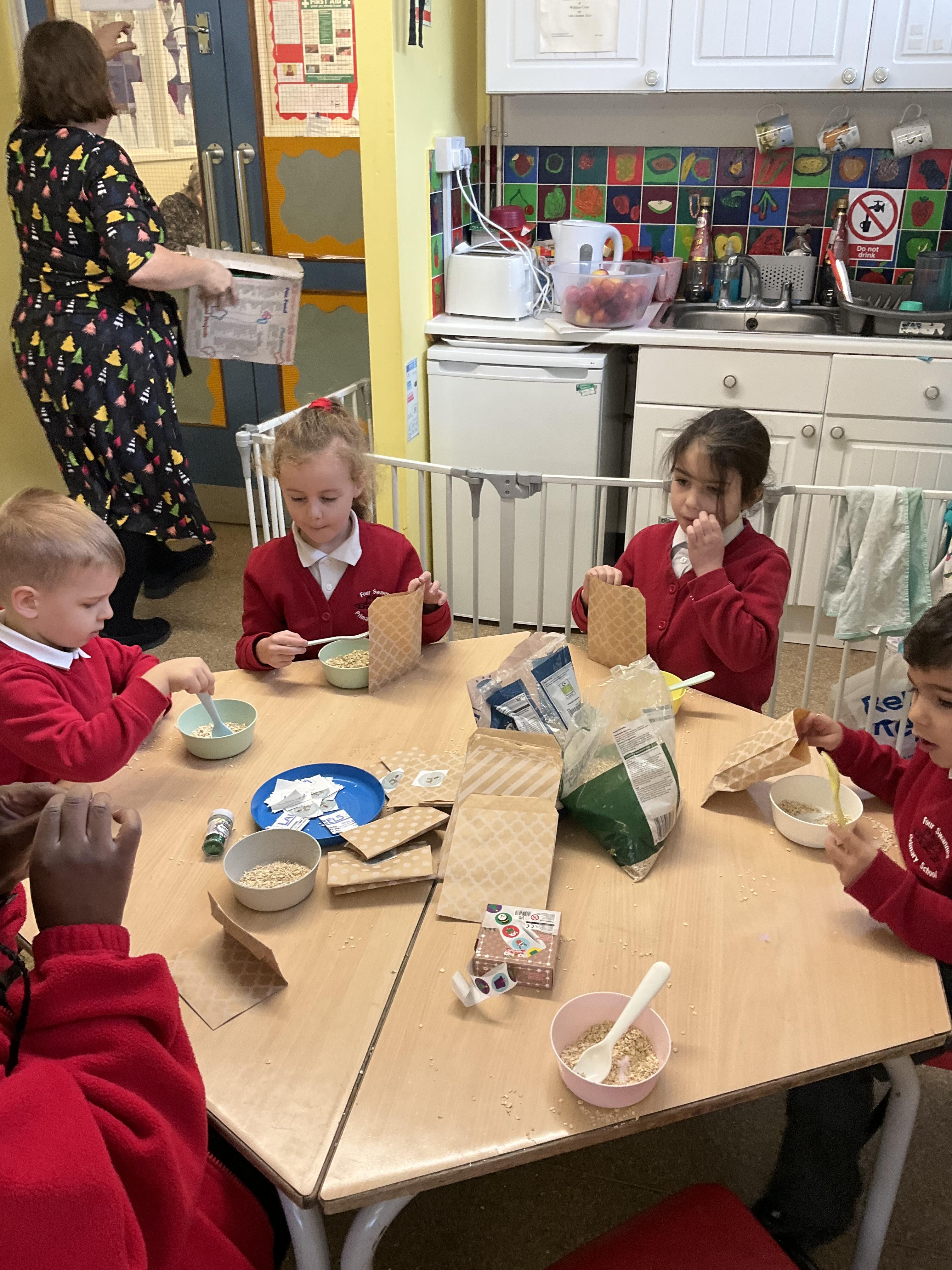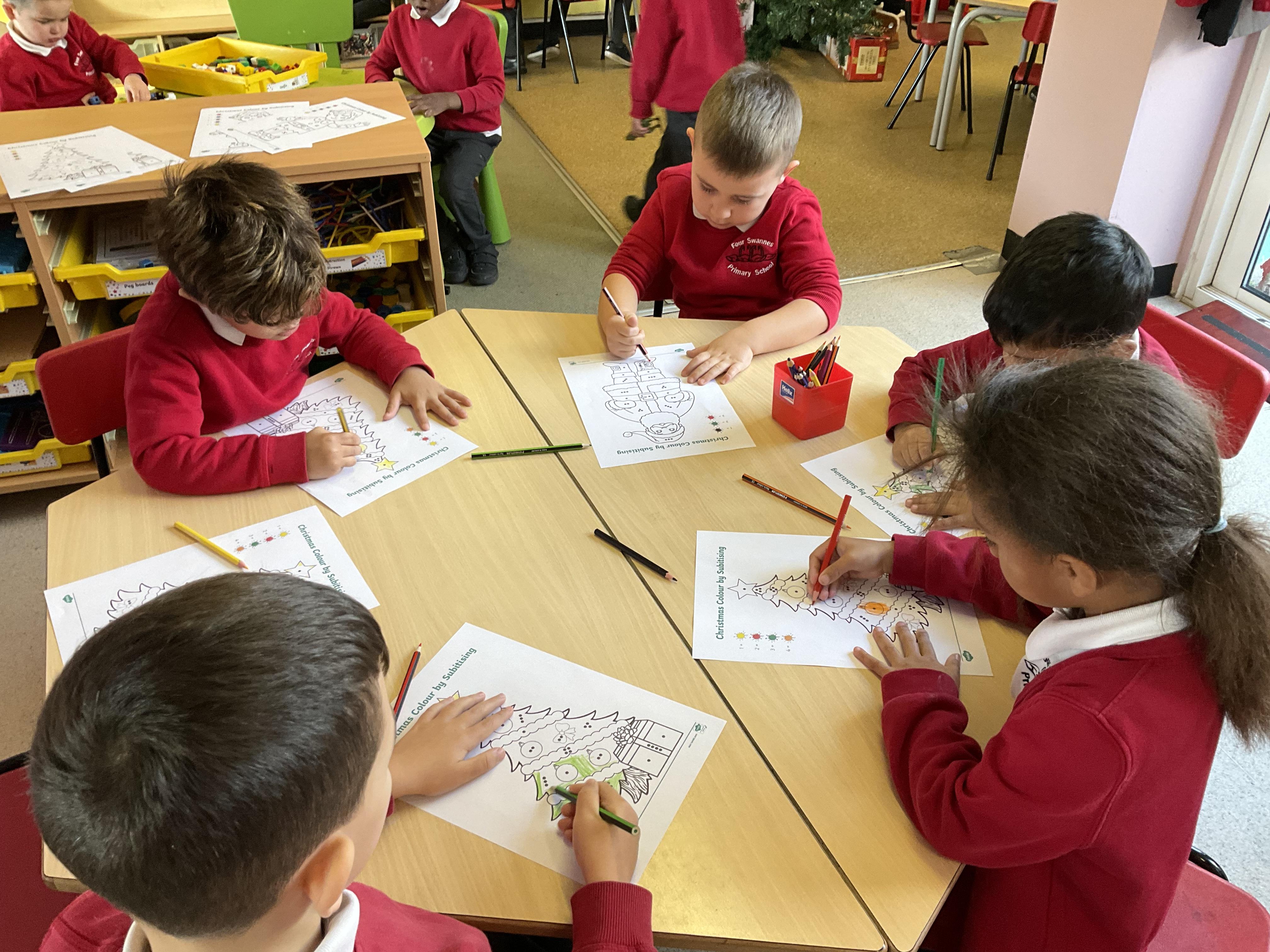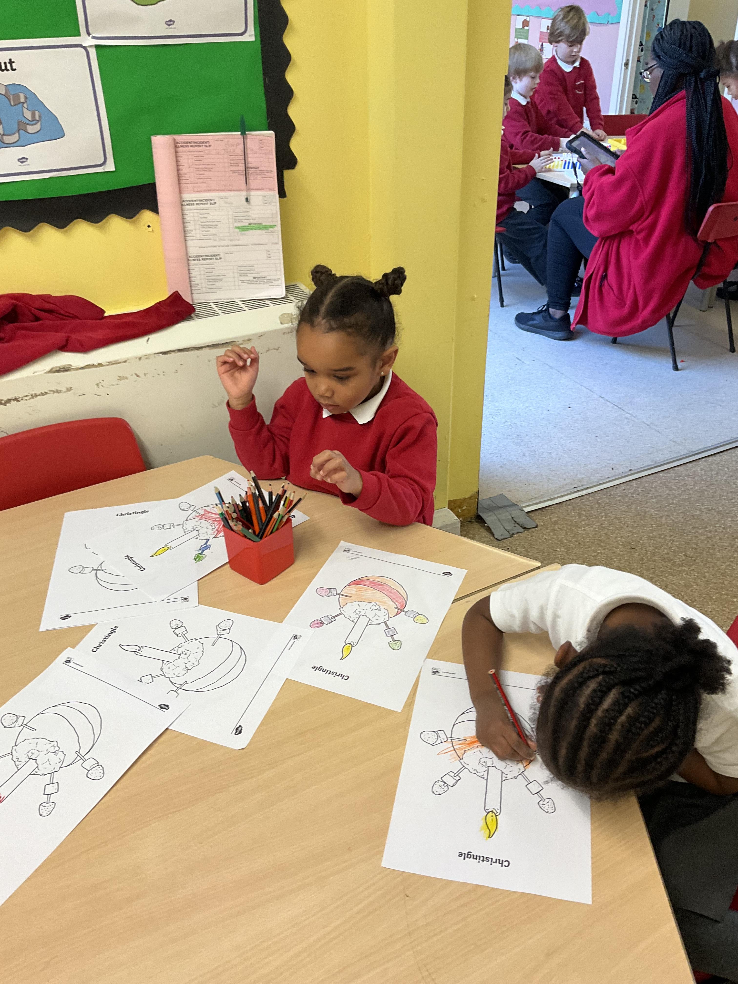 This week the children have been preparing for the Christmas fair. They have been busy making reindeer food and a christmas ornament for their christmas tree. The children have also been listening to christmas music and taking part in christmas maths. They have been busy decorating a christmas tree on the computer. The children have also been busy making a Christingle ready for the Christingle service and enjoyed Christmas dinner on Christmas jumper day. They have been busy making a christmas party hat to wear whilst having their Christmas dinner.