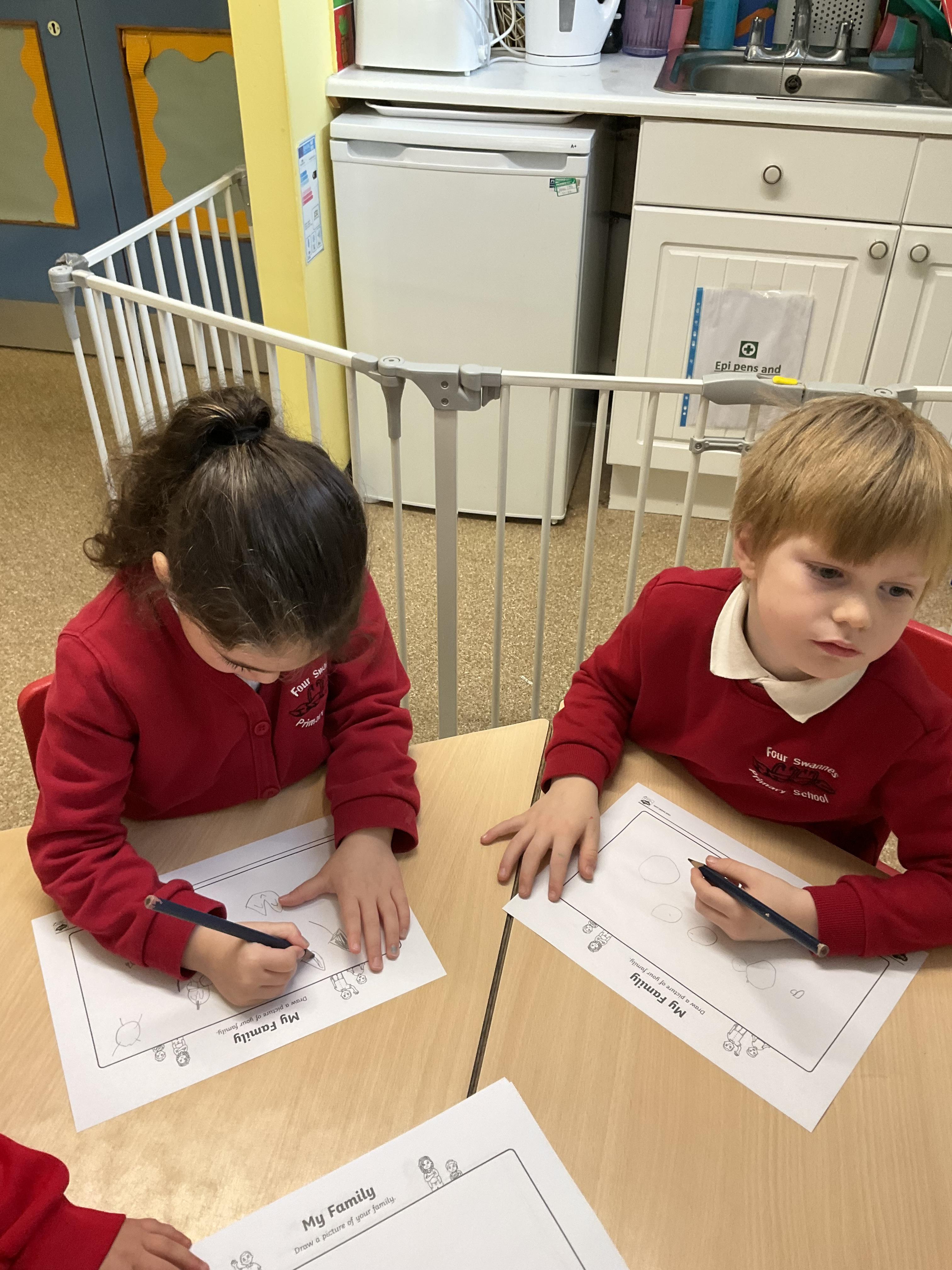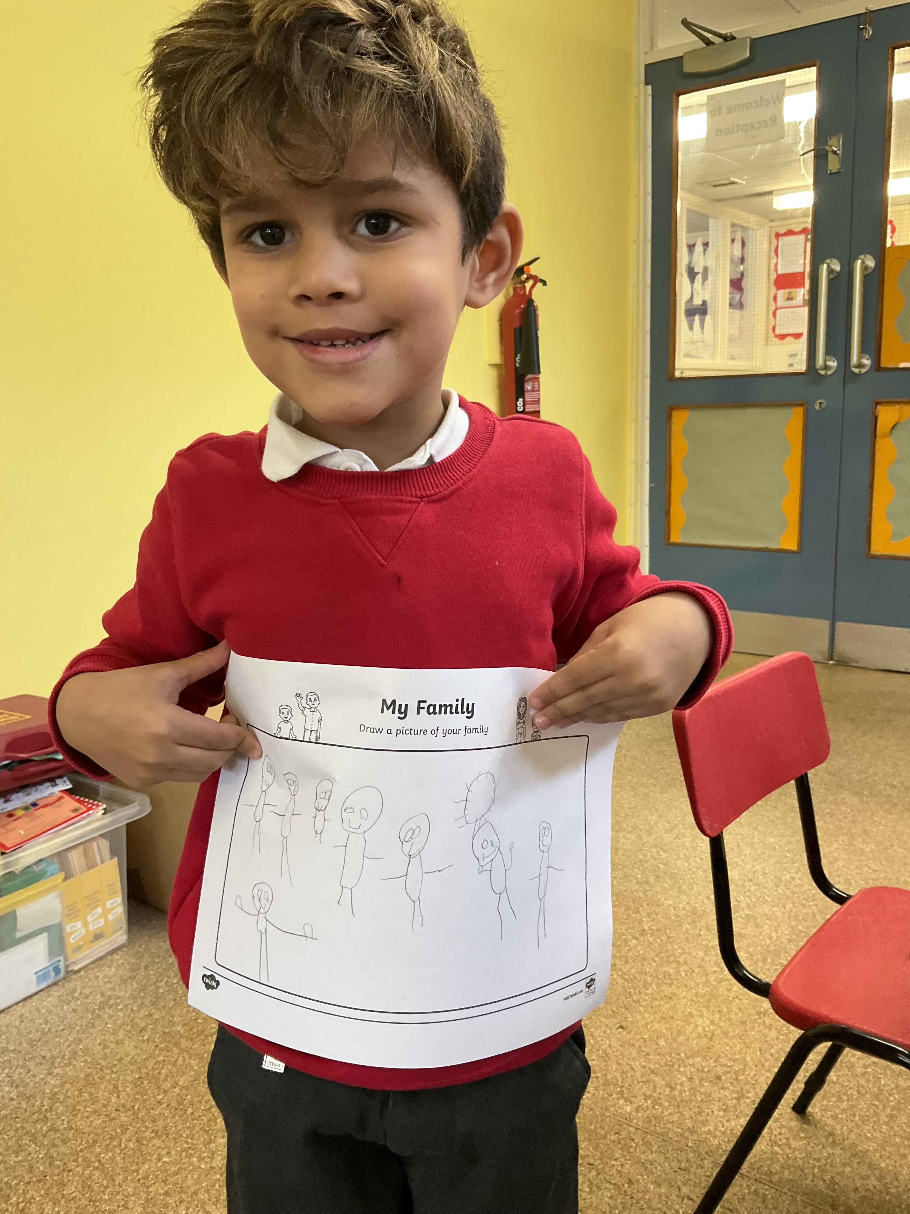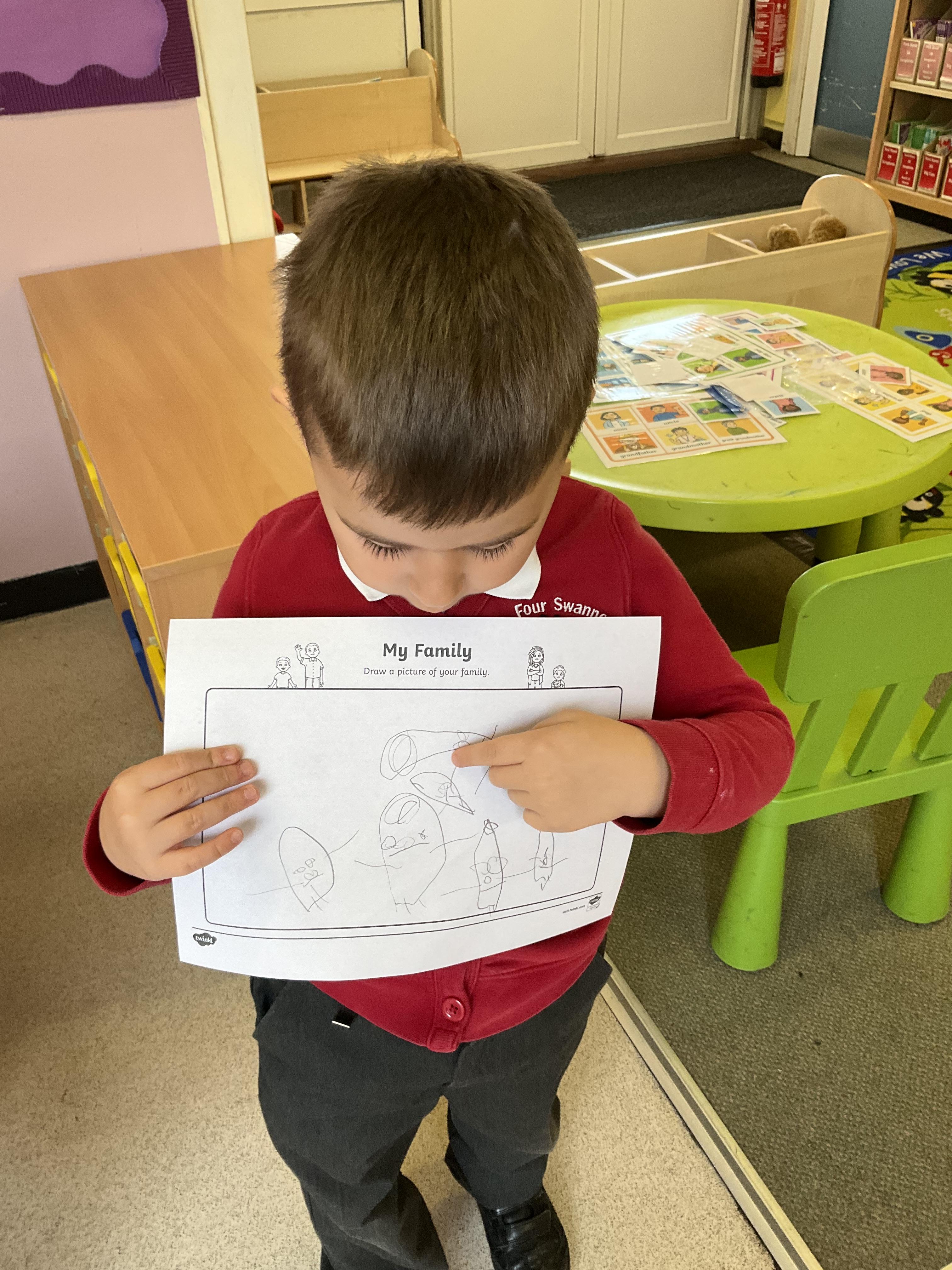 This week the children have been learning about their family. They have listened to a range of stories which relate to family. We have spoken about diverse families and names of family members. The children have also been busy drawing pictures of their family. Some children have also been busy recreating events from home in the home corner.