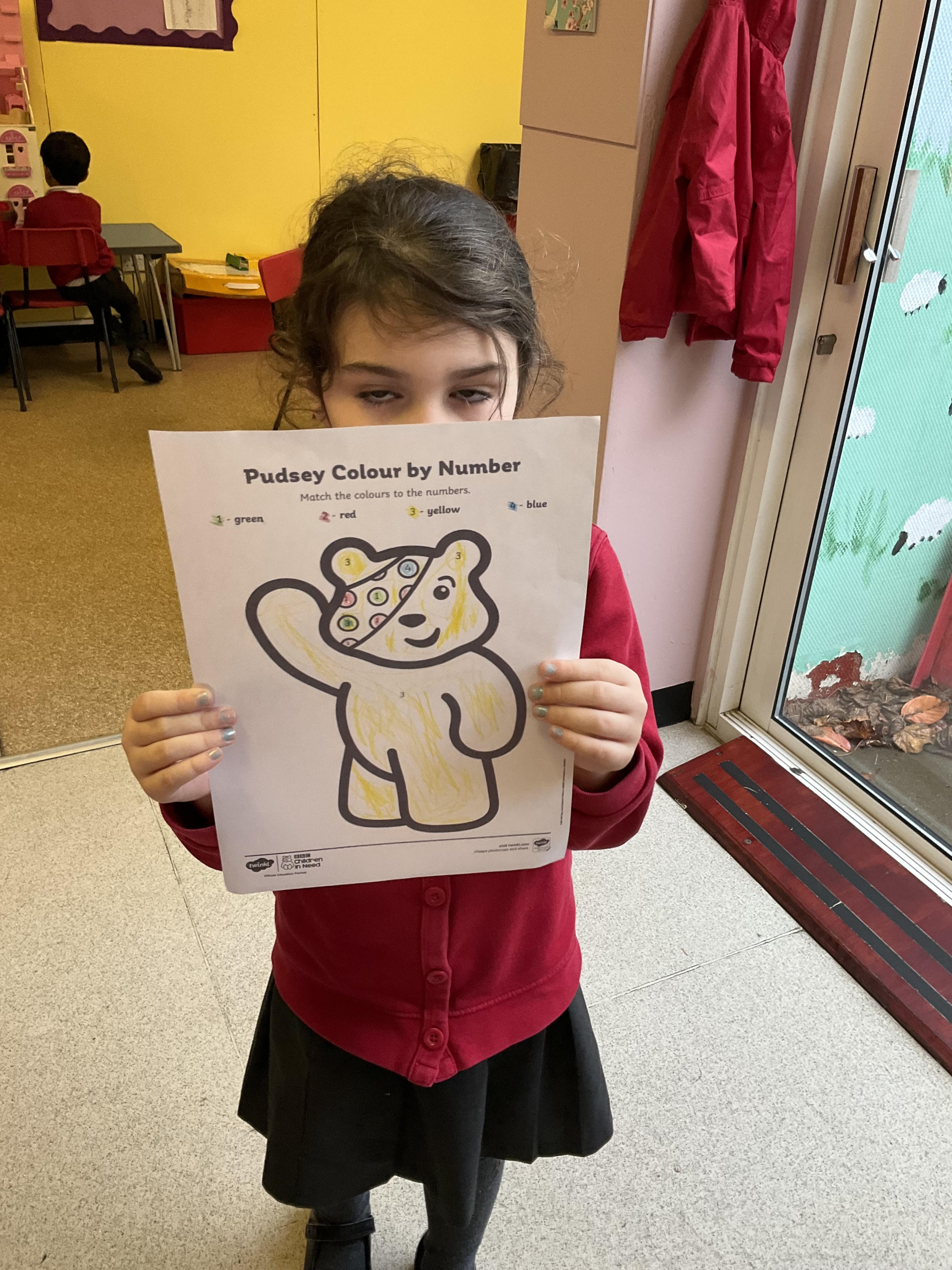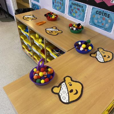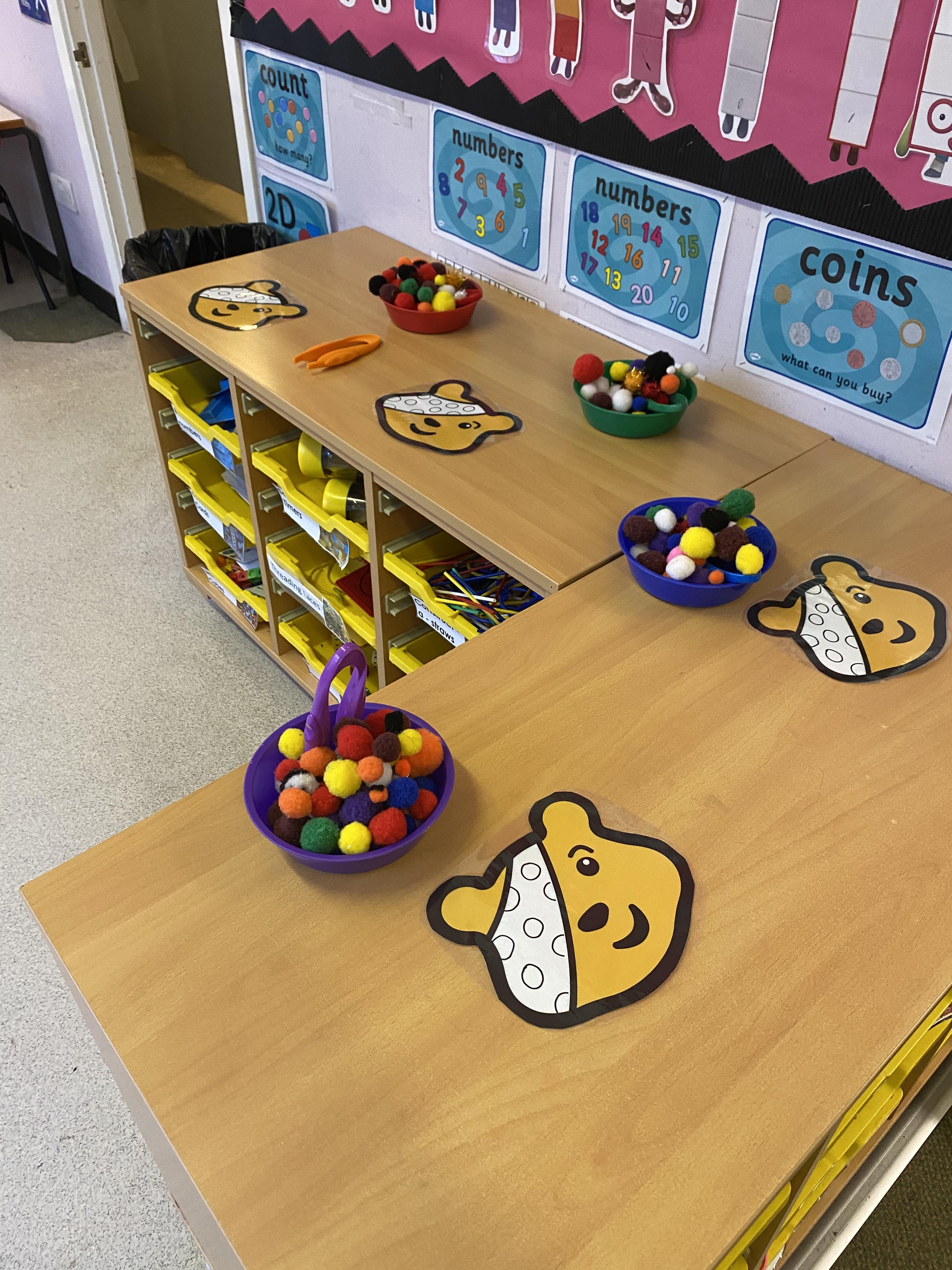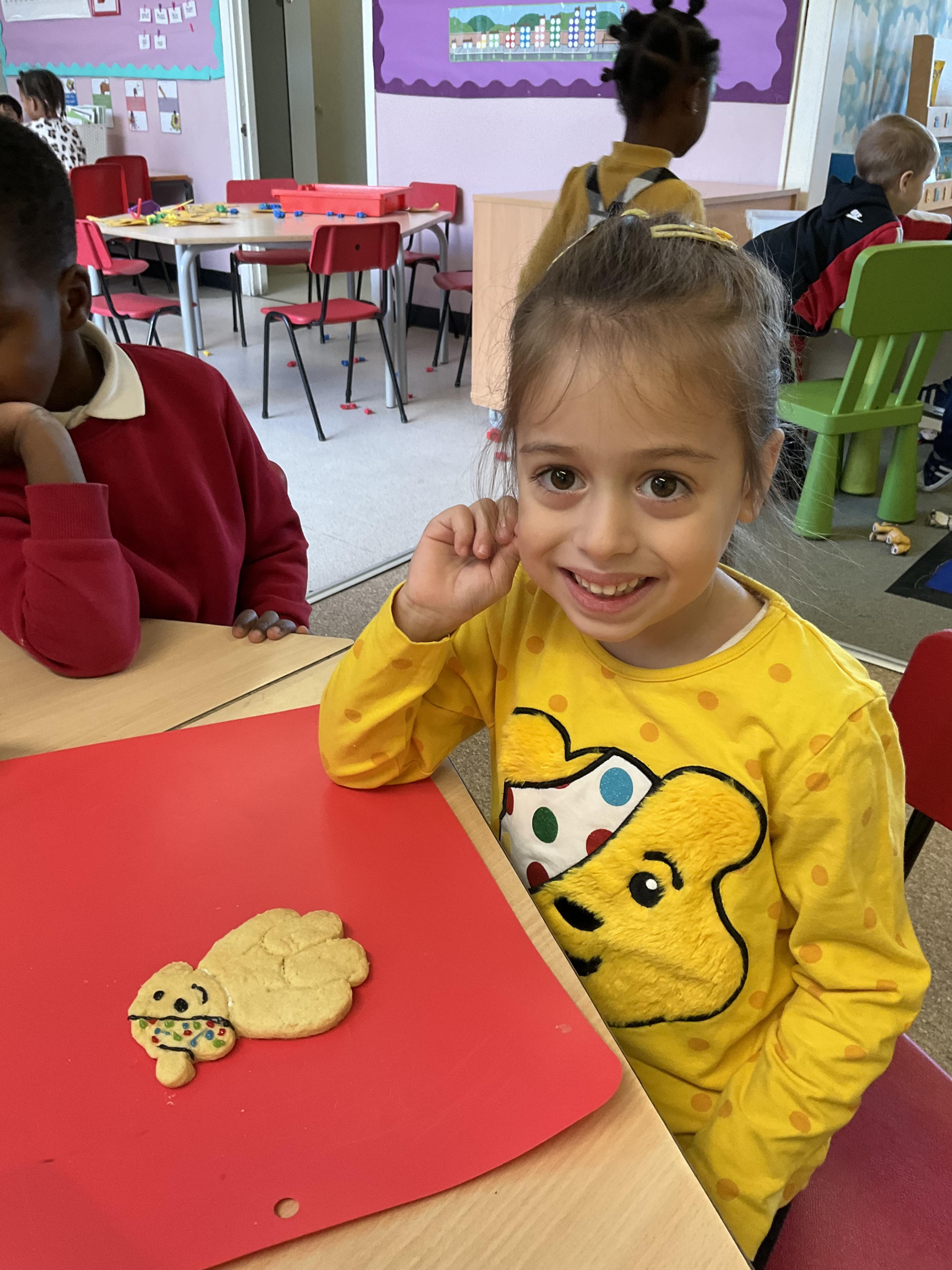 This week the children have been learning about children in need. They listened to the story 'Pudsey Great fundraiser' and learnt about raising money for a charity. Reception class have been busy making and decorating pudsey bear biscuits to raise money for children in need. The children have also been busy colouring in pudsey bear bunting for the fundraising day, colouring in pudsey bears, adding pom poms to pudsey bandanna and counting bears. Here are some photos of their learning this week.