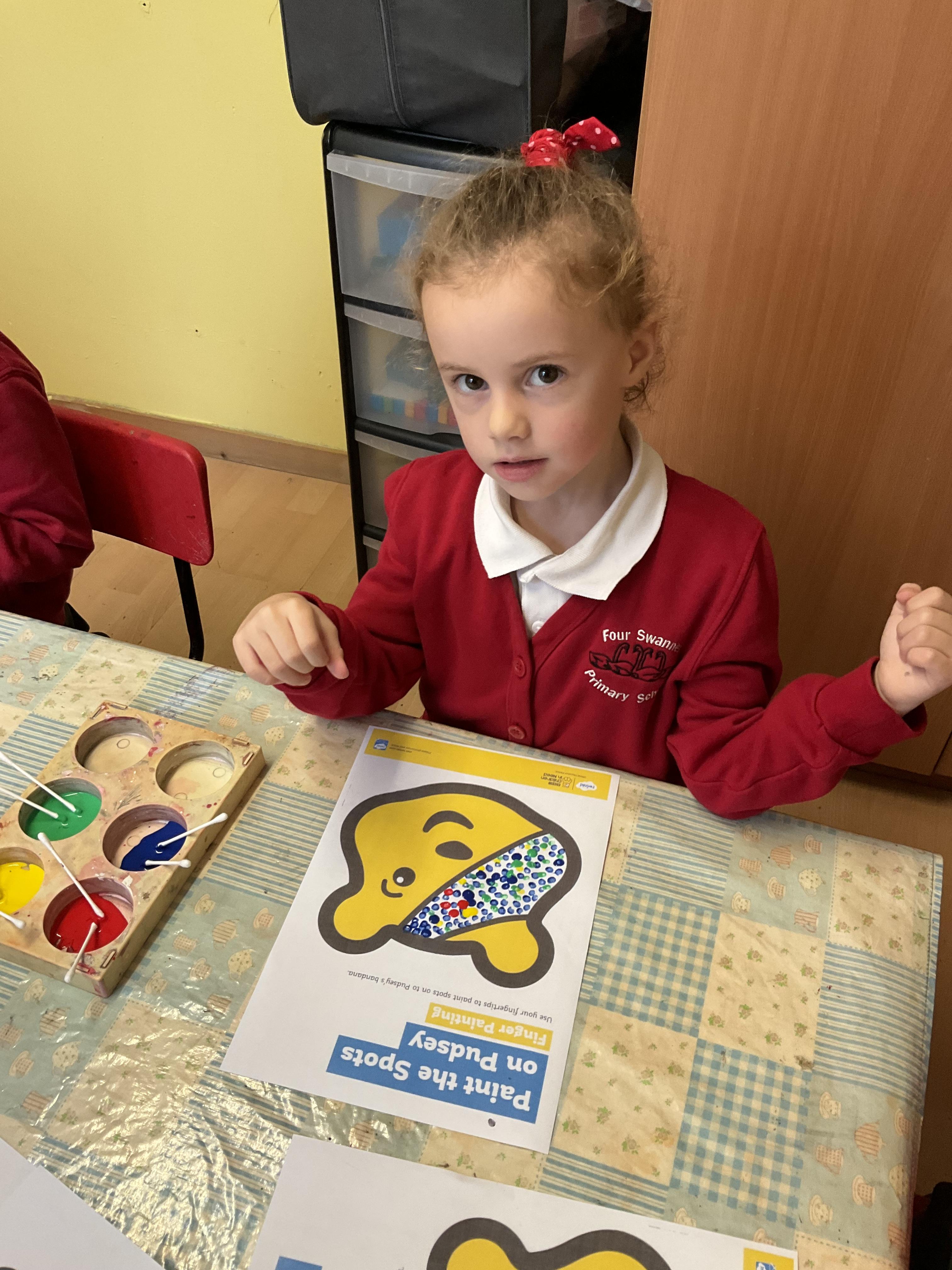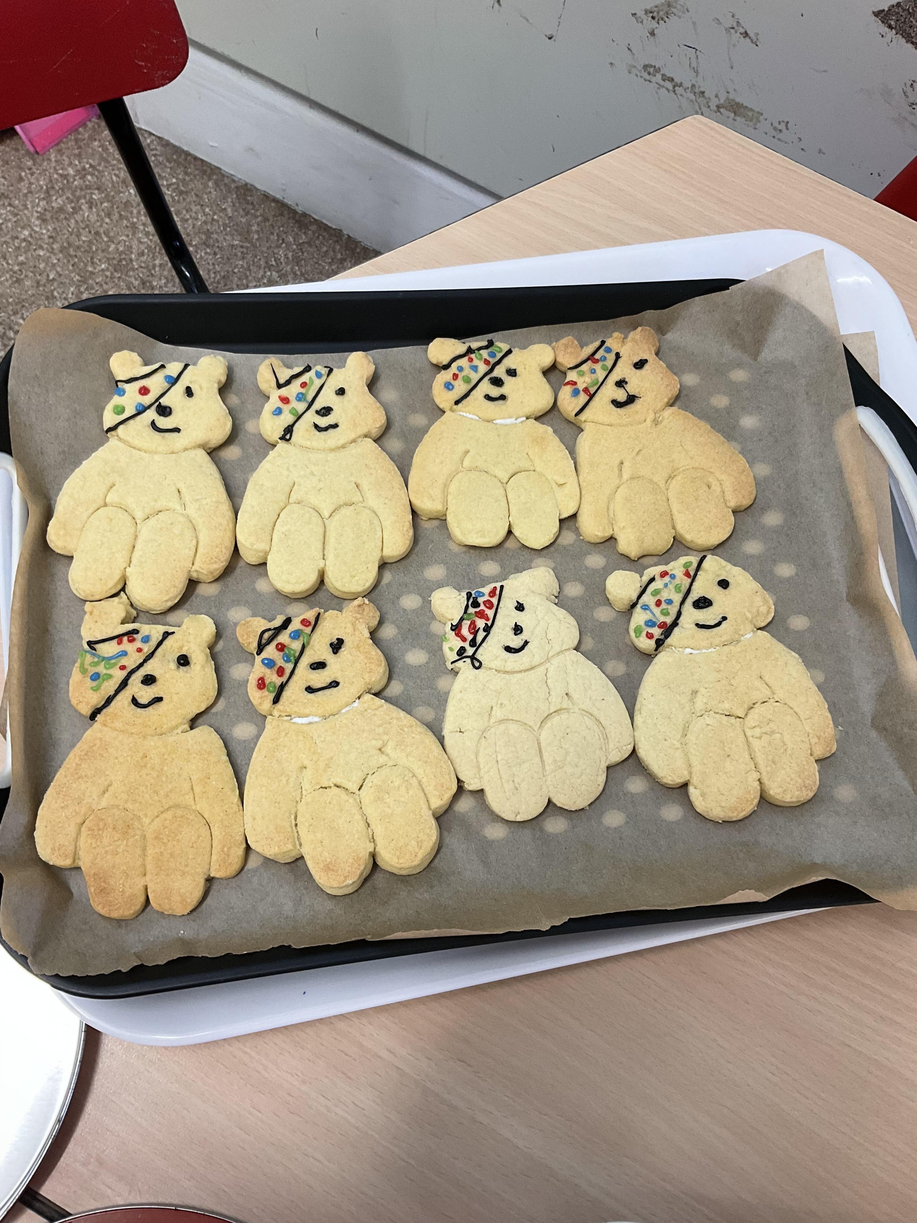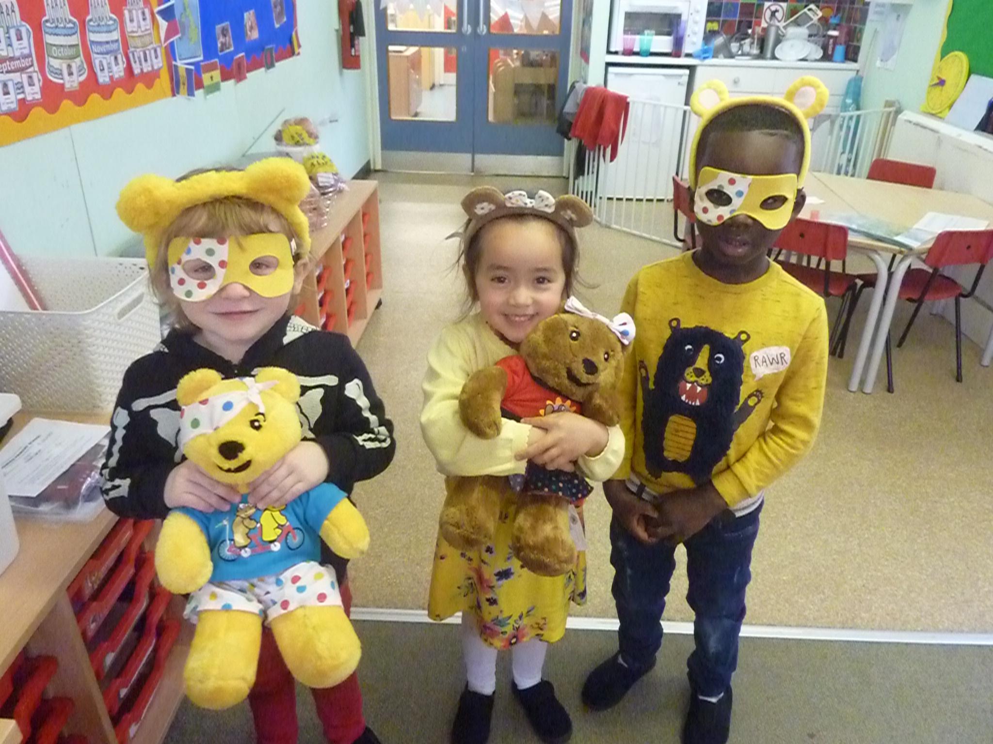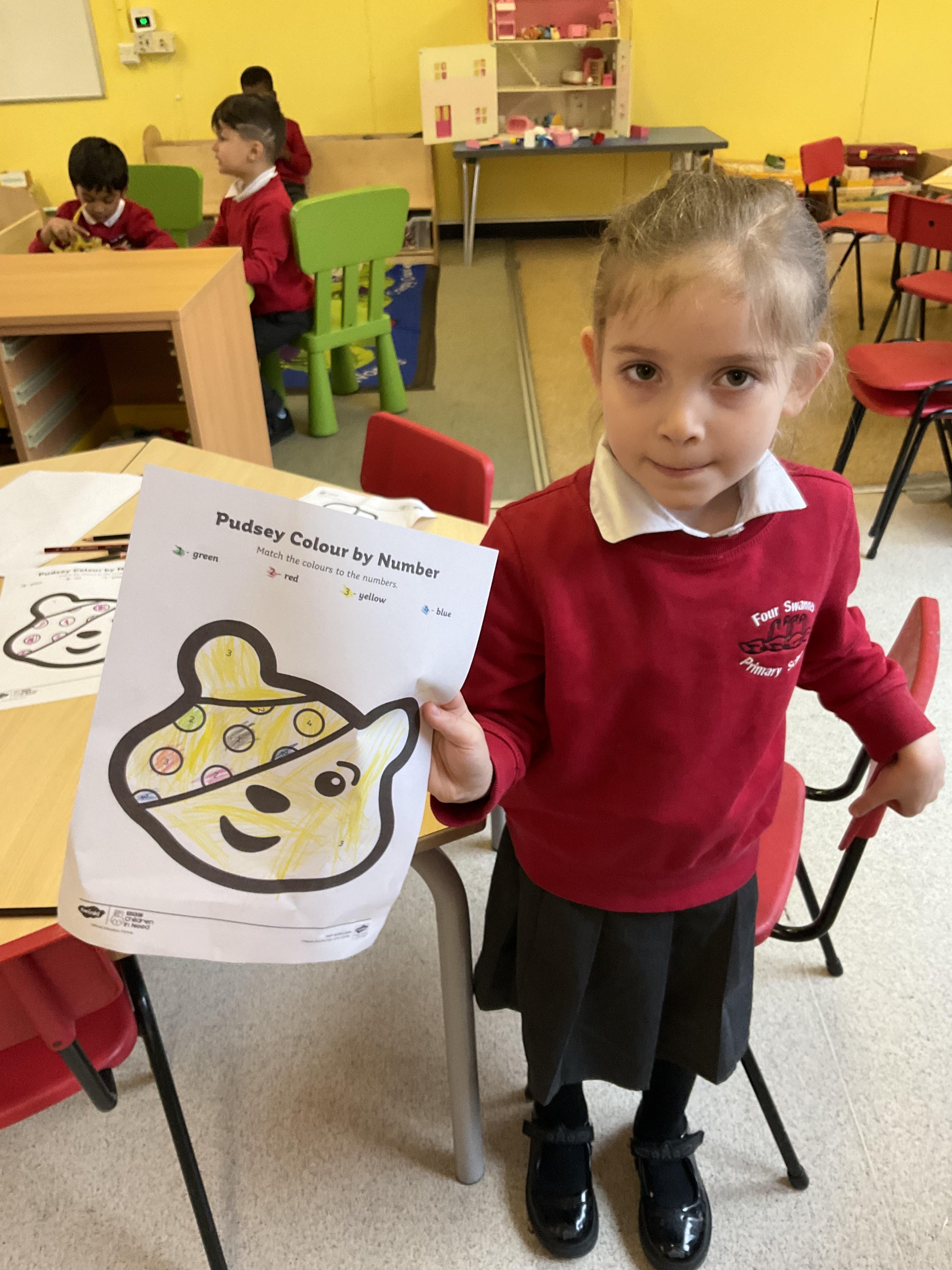 This week the children have been learning about children in need. They listened to the story 'Pudsey Great fundraiser' and learnt about raising money for a charity. Reception class have been busy making and decorating pudsey bear biscuits to raise money for children in need. The children have also been busy colouring in pudsey bear bunting for the fundraising day, colouring in pudsey bears, adding pom poms to pudsey bandanna and counting bears. Here are some photos of their learning this week.