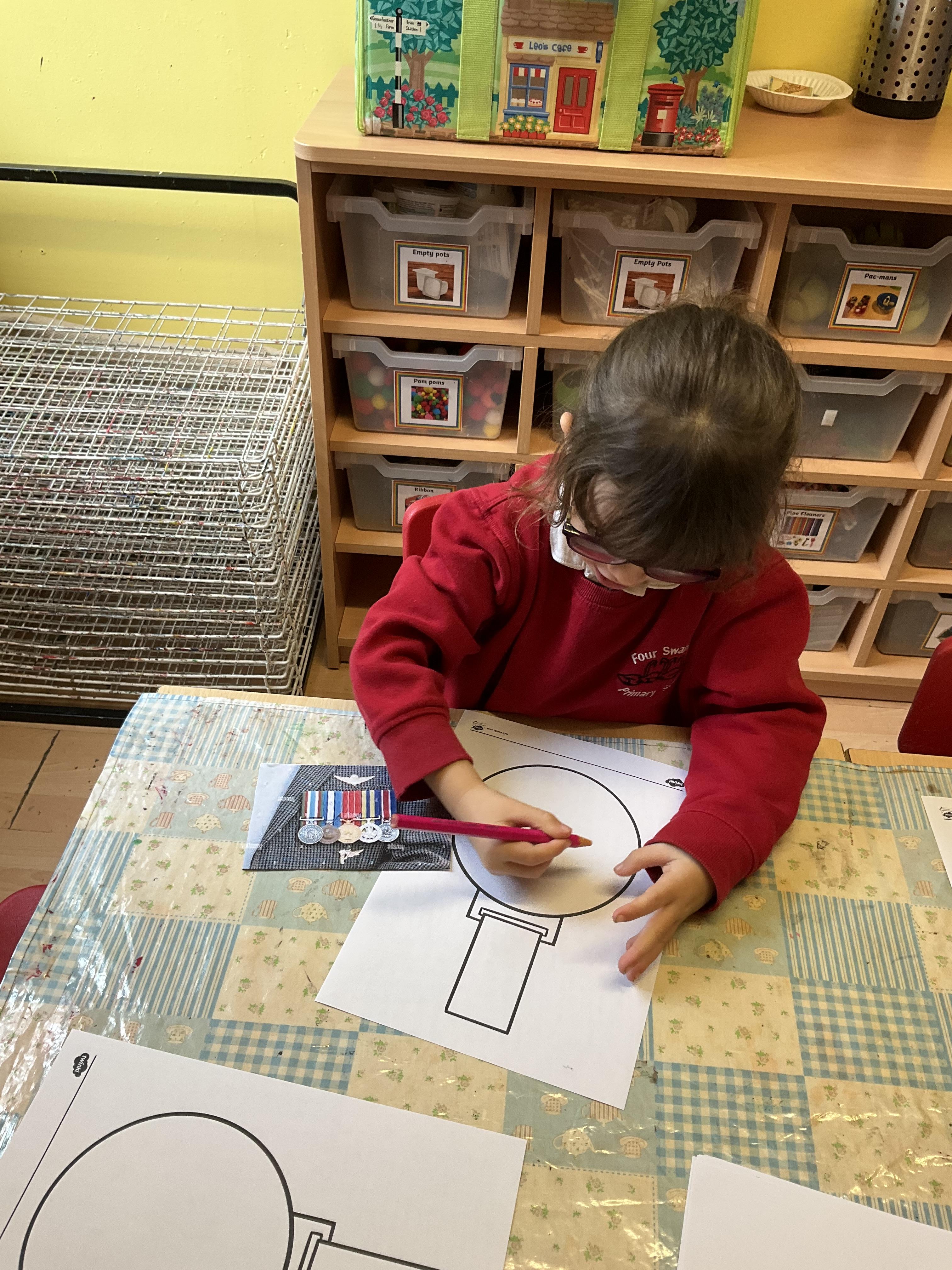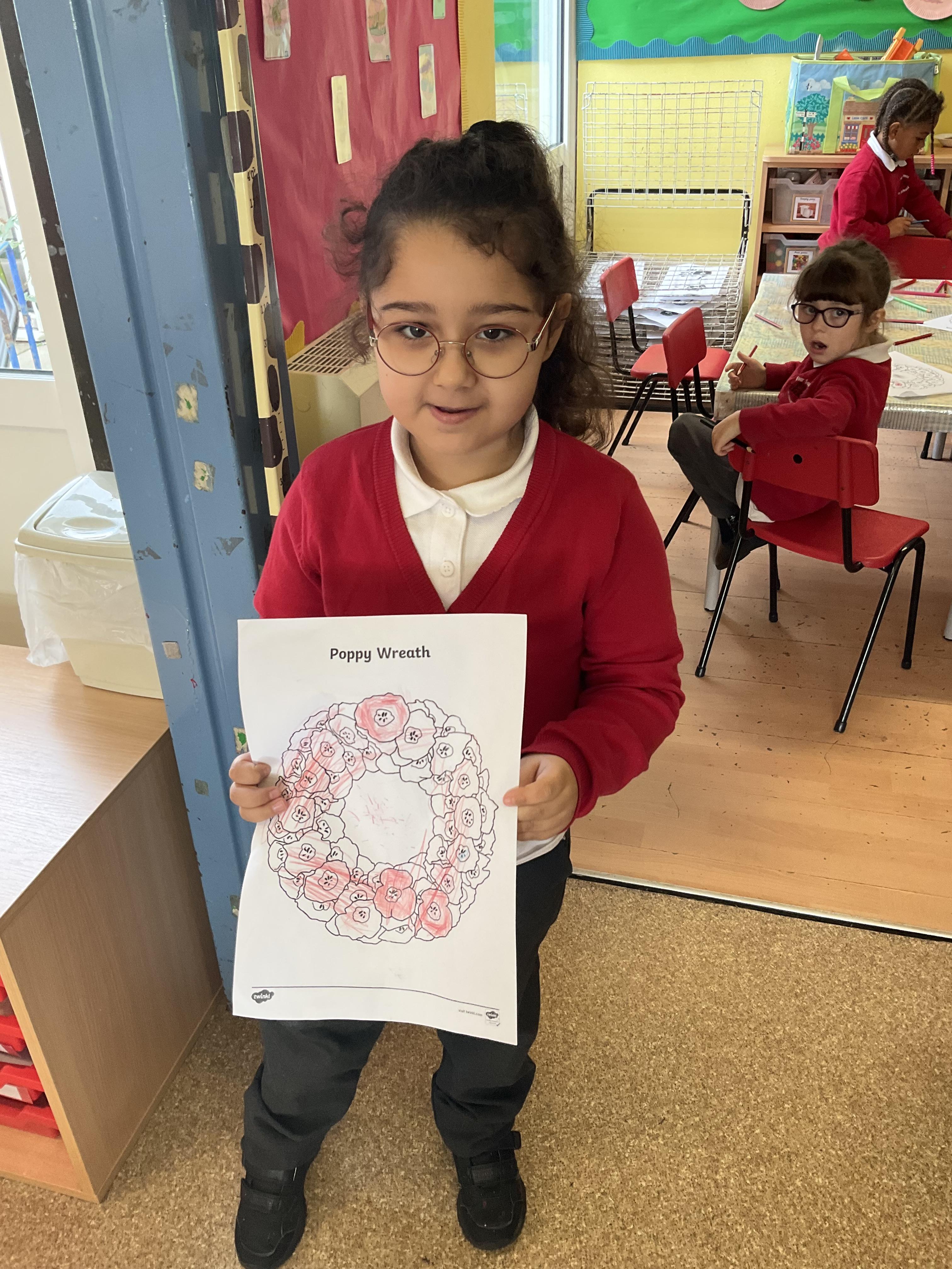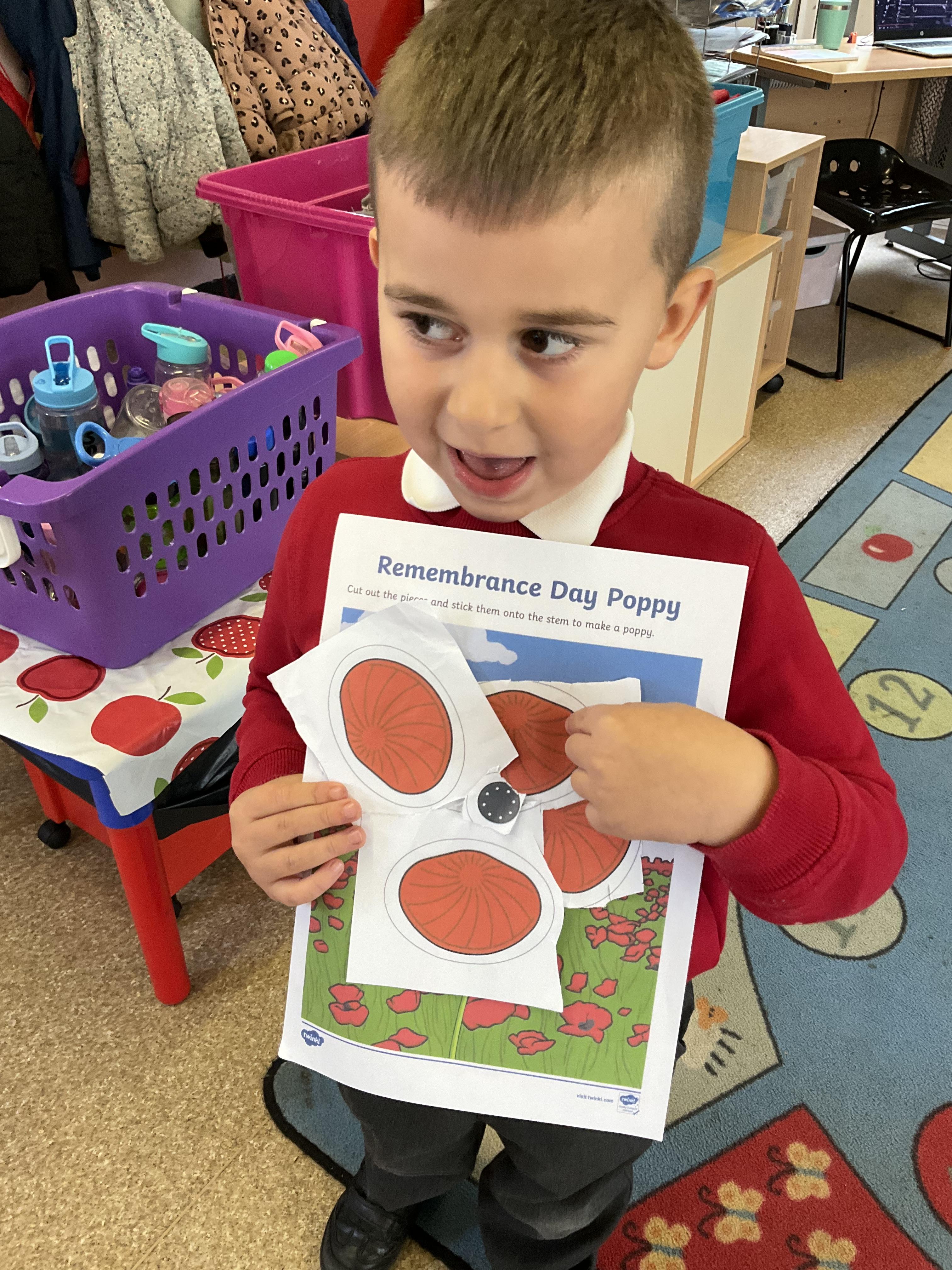 This week the children have been learning about Remembrance Day. They have listened to the story 'Where the Poppies Now grow' and watched videos all this day. The children have also coloured in poppy wreaths, made poppies with playdough, designed their own medals which would have been given to the soldiers and created their own poppies. The children also took part in a minute silence on Friday at 11am with the rest of the school. Here are some photos of their learning this week.