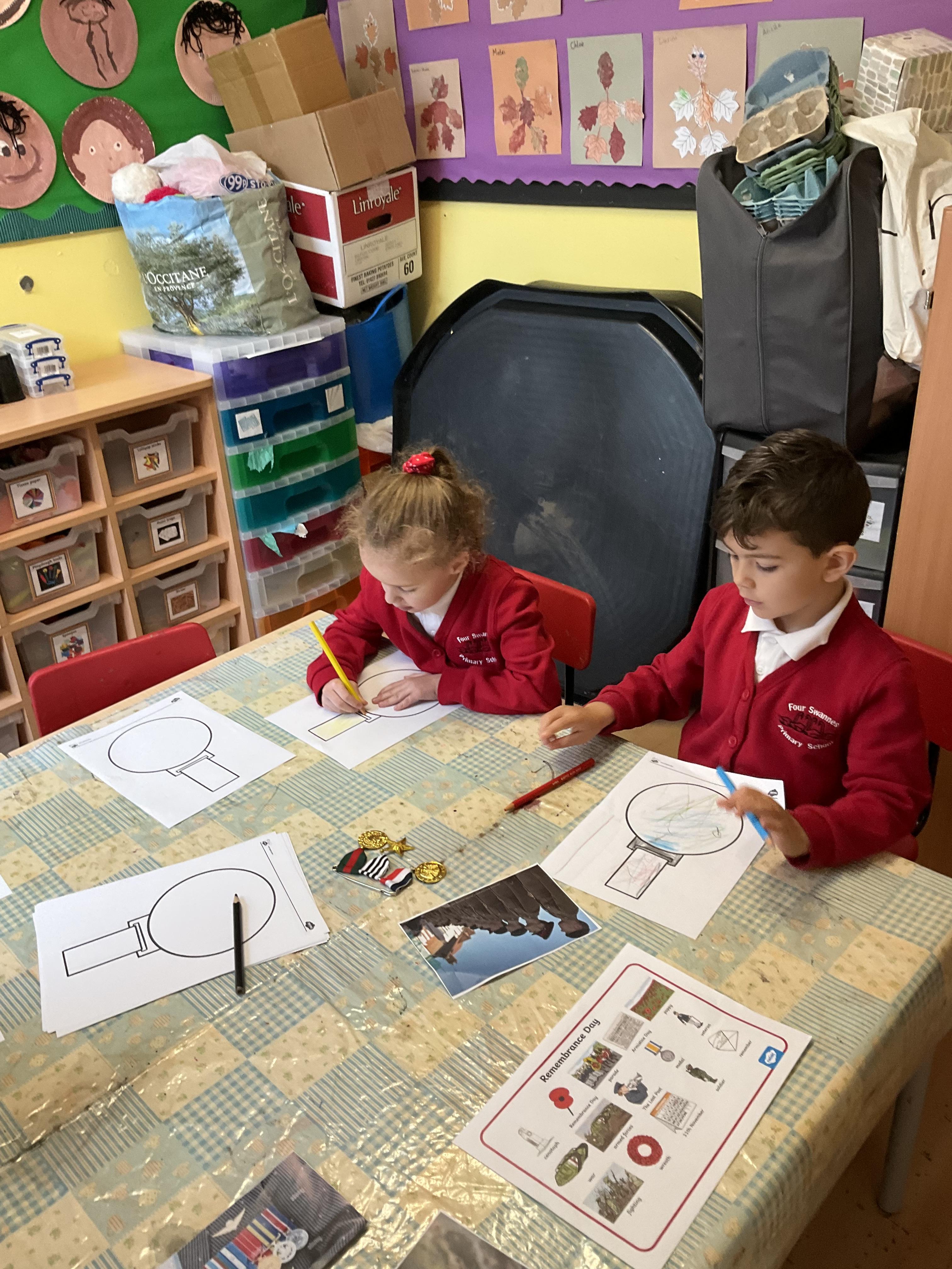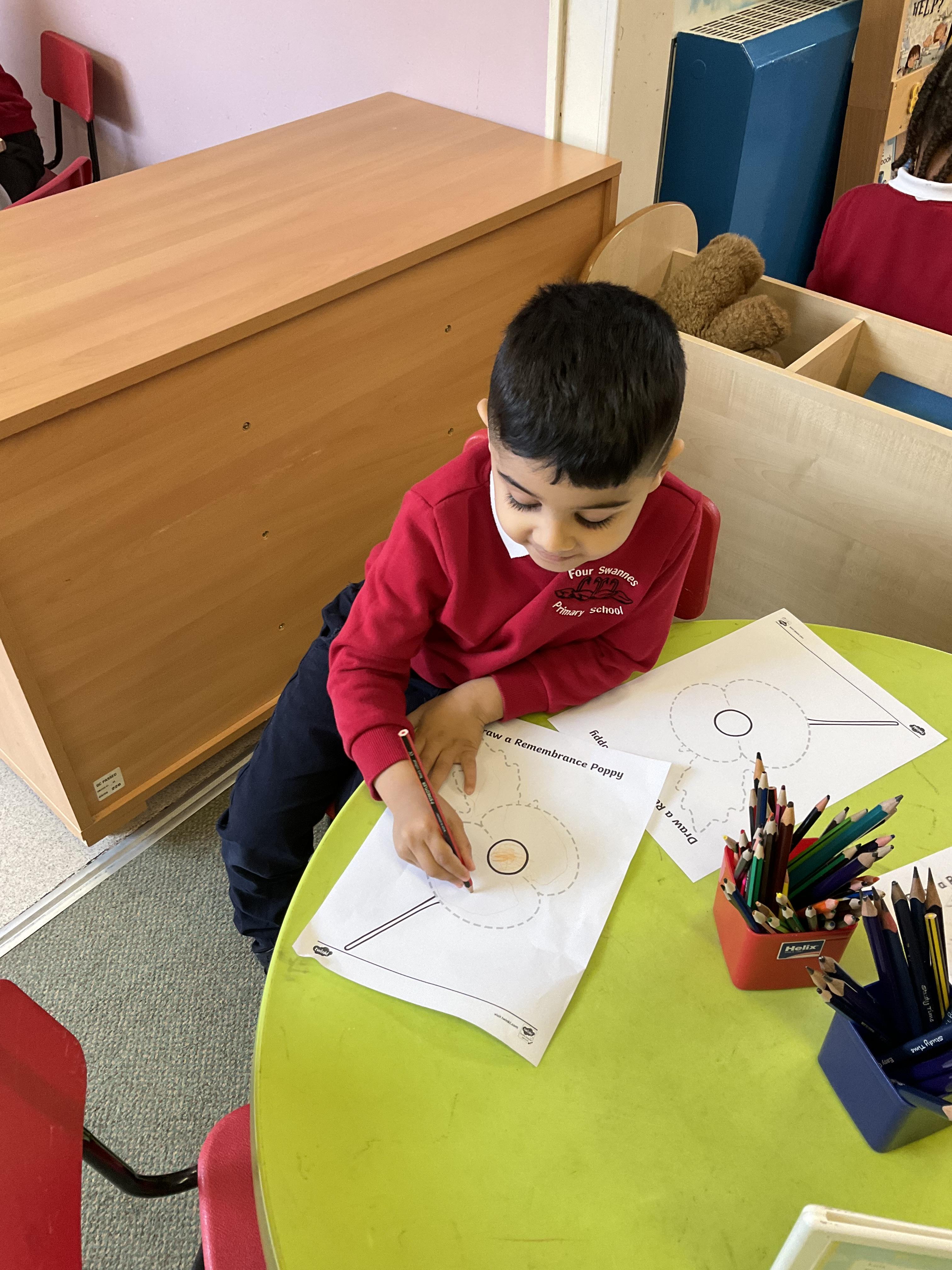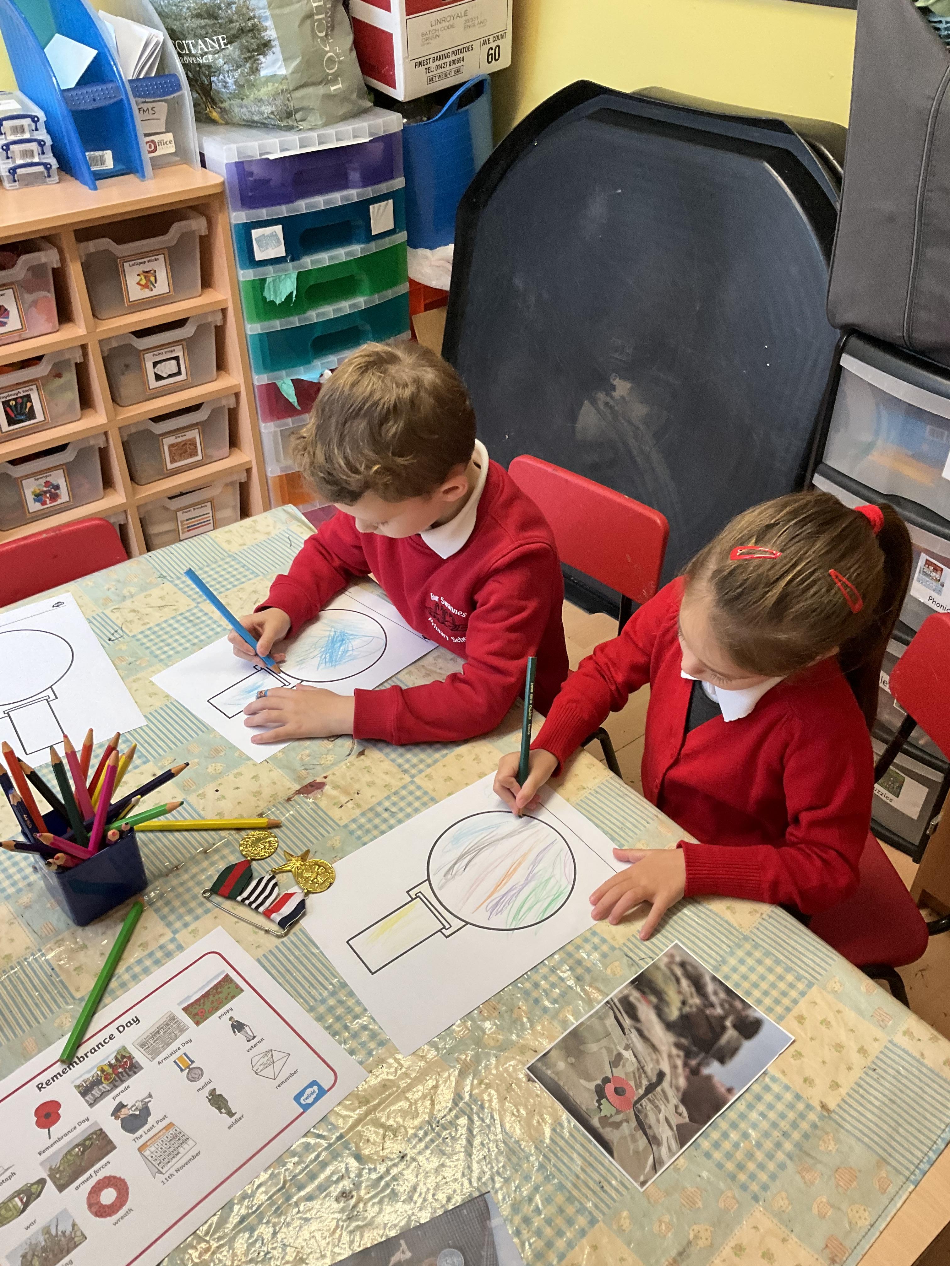 This week the children have been learning about Remembrance Day. They have listened to the story 'Where the Poppies Now grow' and watched videos all this day. The children have also coloured in poppy wreaths, made poppies with playdough, designed their own medals which would have been given to the soldiers and created their own poppies. The children also took part in a minute silence on Friday at 11am with the rest of the school. Here are some photos of their learning this week.