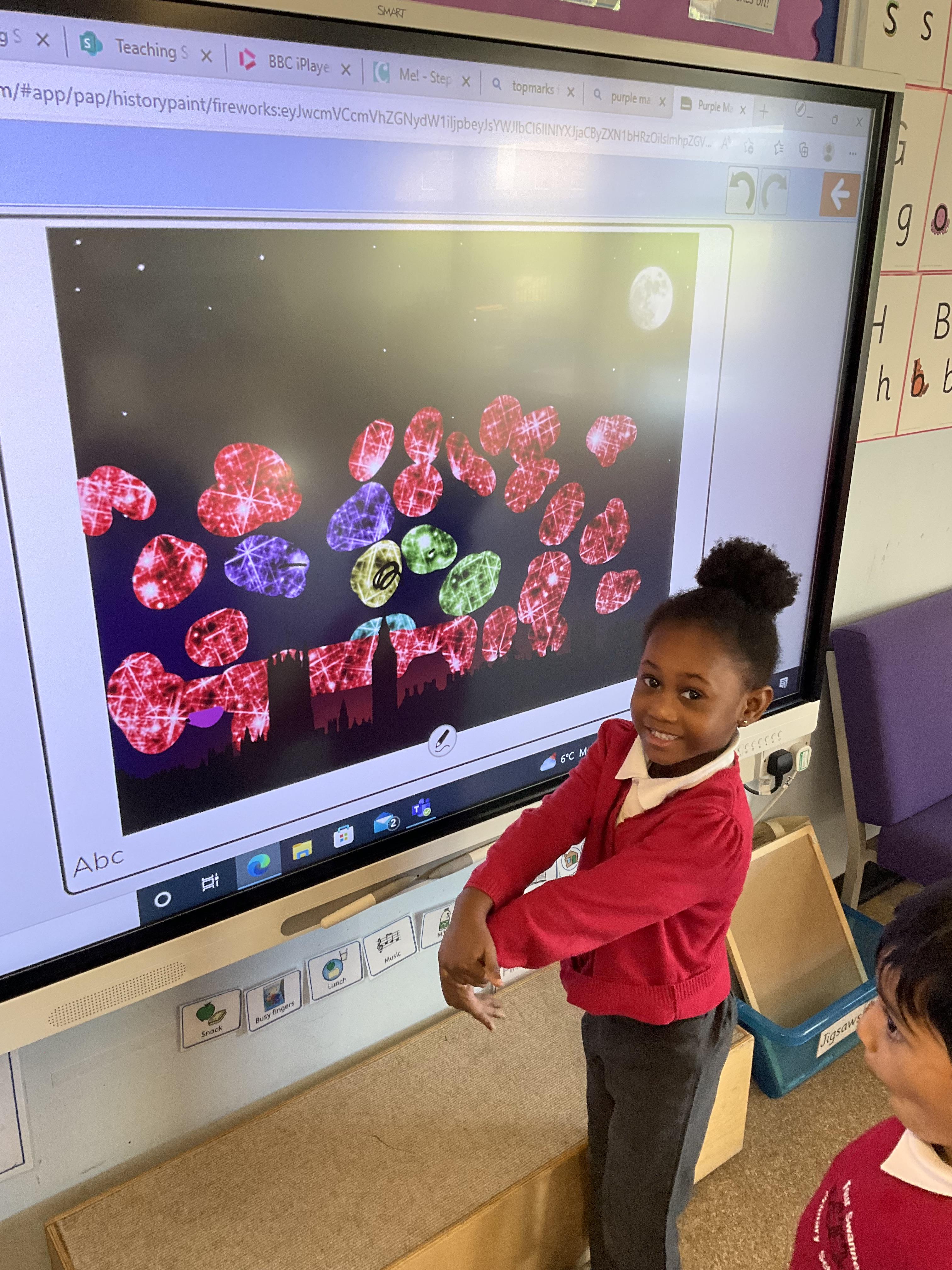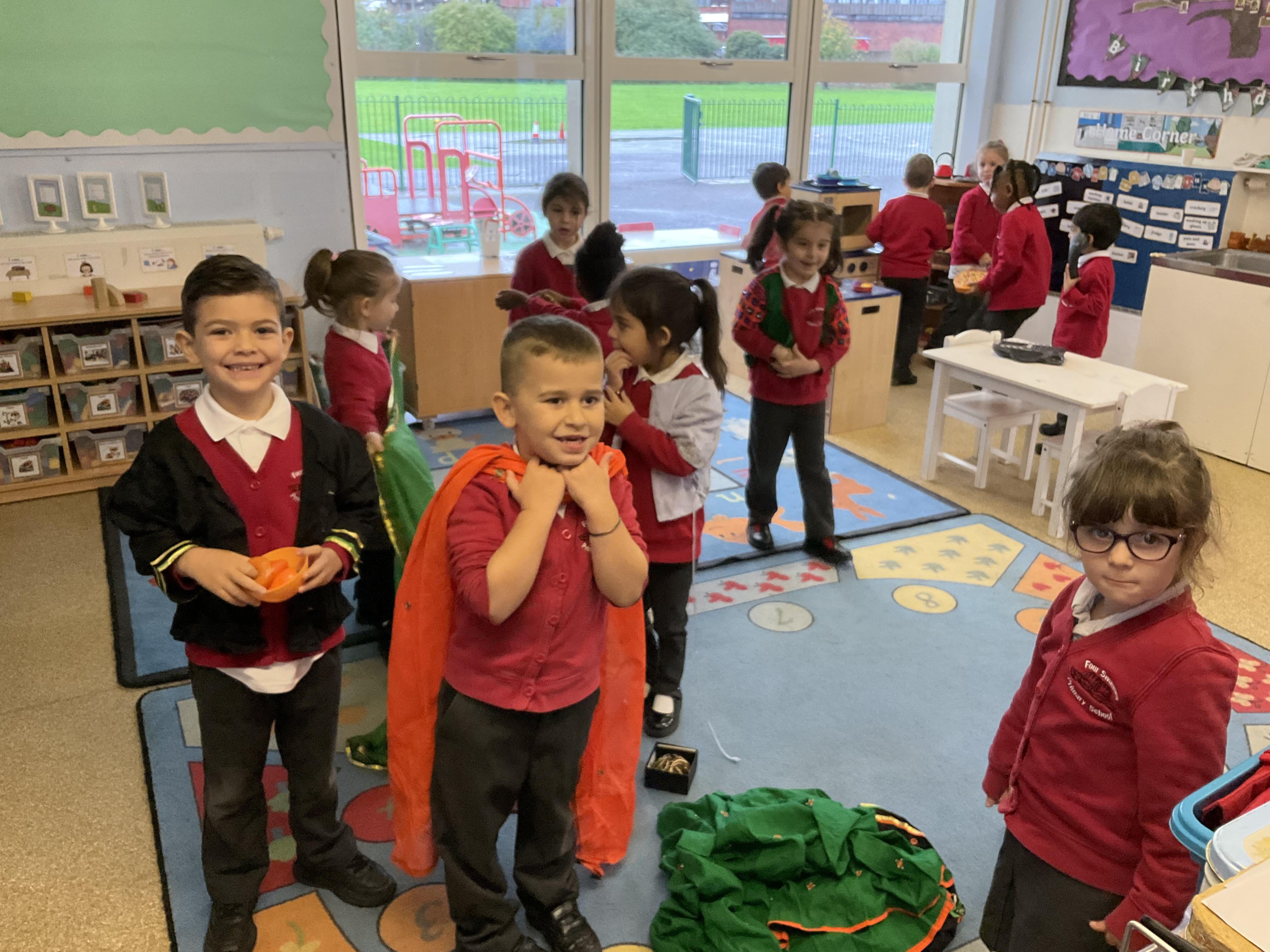 This week the children have had great fun learning about Halloween, Diwali and Bonfire Night. The children have taken part in lots of activities to support them to understand these celebrations. The children also listened to lots of stories which linked to these festivals. The children designed pumpkins and dressed up for halloween. They created their own mendhi patterns, rangoli patterns, dressed up in traditional indian clothes and danced to some diwali music. Finally, they created their own firework paintings with paint and chalk for bonfire night. The children also watched lots of videos to learn about the festivals.