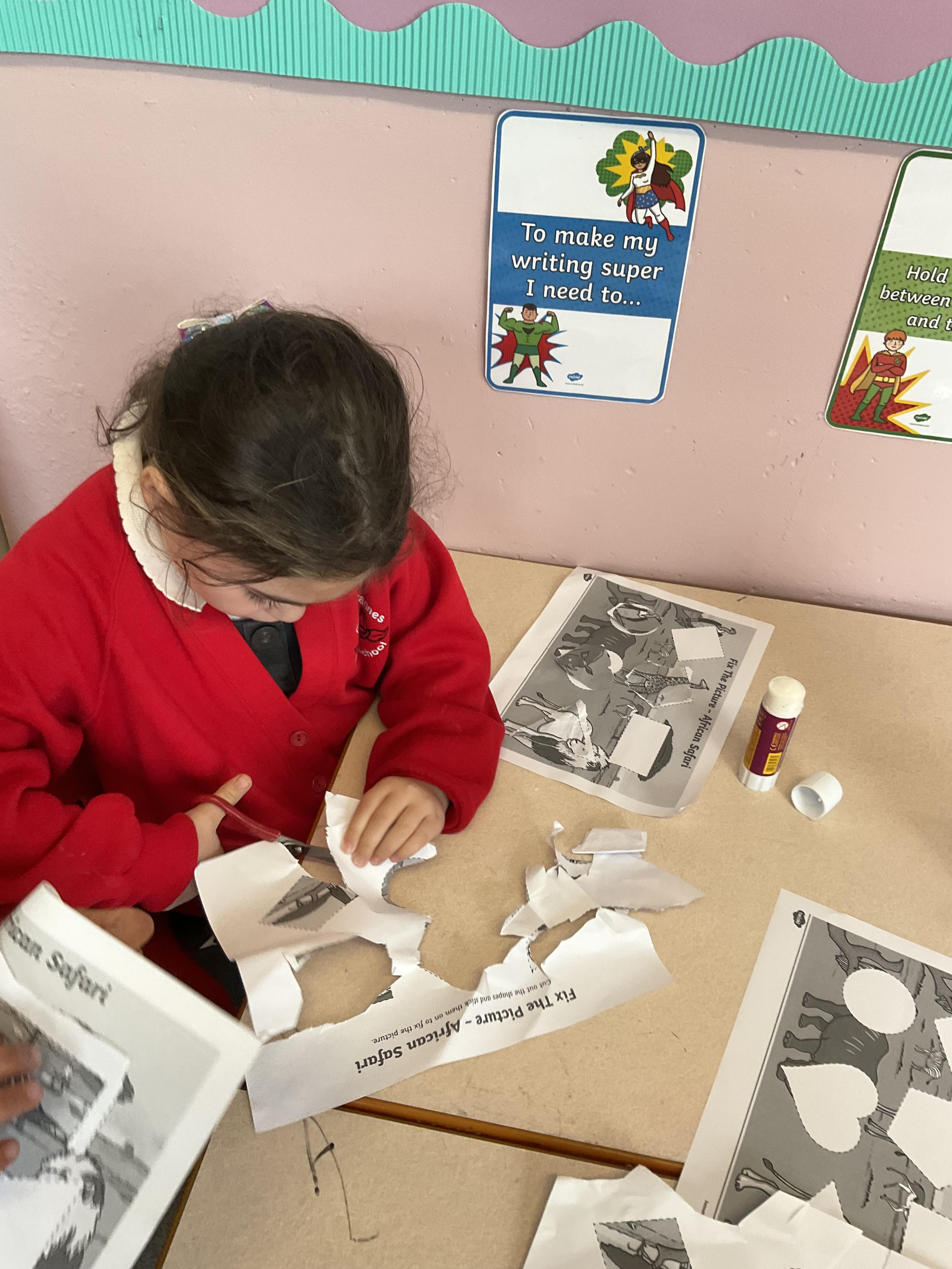 This week the children took part in RE Day where they learnt about Harvest and a Jewish festival called Sukkot. The children learnt that during Sukkot Jews live in a Sukkah for 7 days and are thankful for the world God has provided for them. Reception class enjoyed colouring in a Sukkah and also making paper chains. The children have been looking at a book 'Amazing Africa'. They have listened to african music, explored african safari animals and also looked at african patterns used on traditional clothes. The children have also taken part in some african cutting. Here are some pictures of their learning.