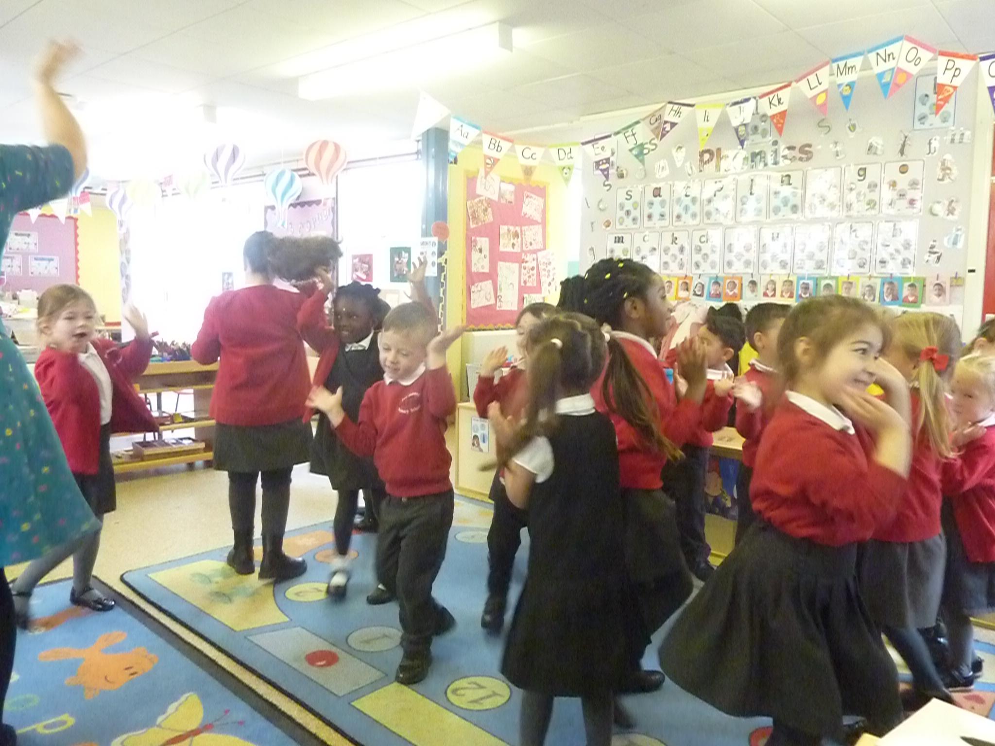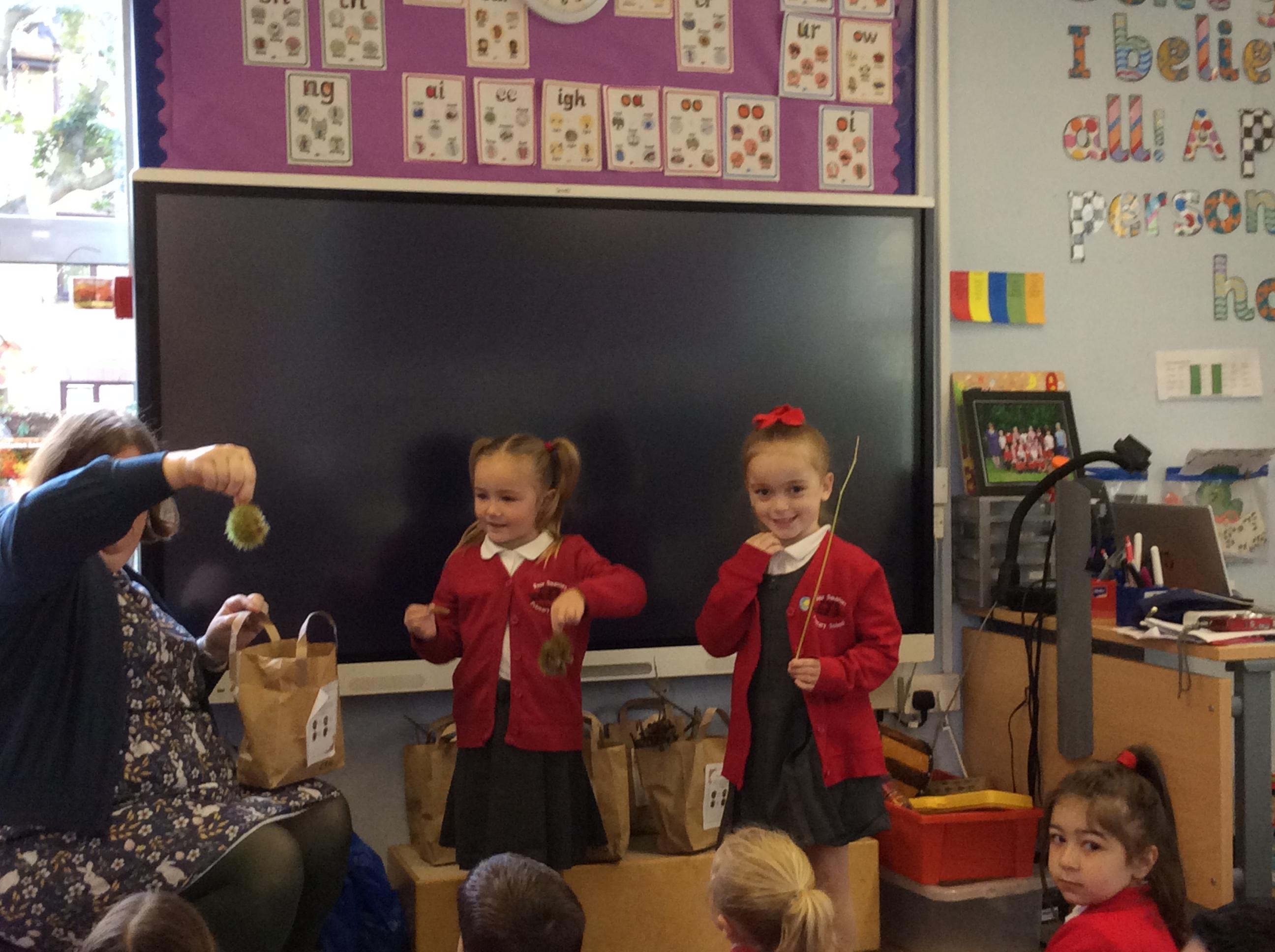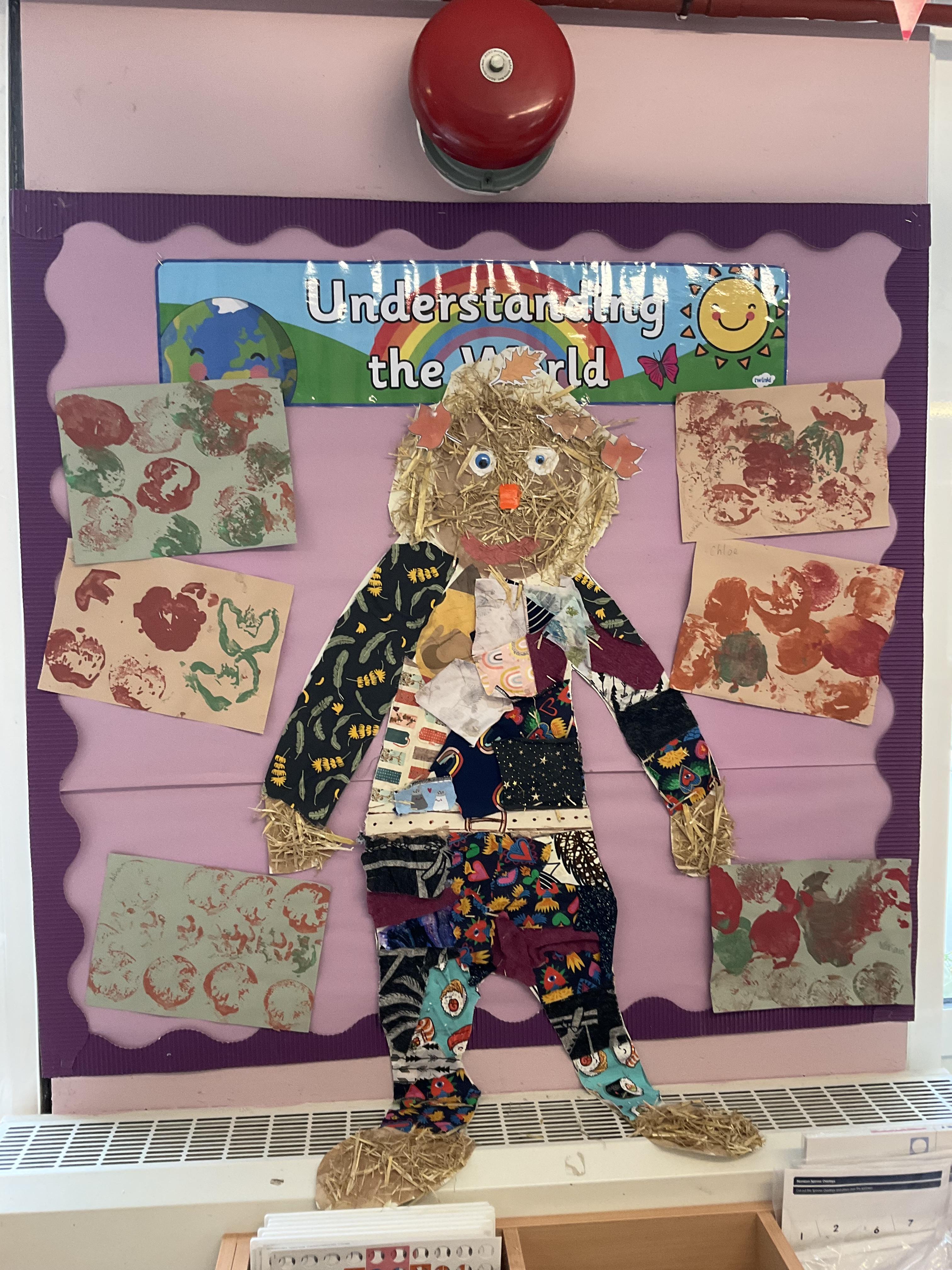 This week the children have been learning all about Harvest. They have been taking part in fruit and vegetable printing, decorated a giant scarecrow using straw and bits of fabric and learnt the song lyrics and actions to the song 'Dingle Dangle Scarecrow'. The children also learnt about what harvest is and how it is celebrated. On Friday they went to see the collection of food themselves and the rest of the school had collected. The children learnt that this food was going to be taken to the food bank. Here are some pictures and a video of them performing the song.