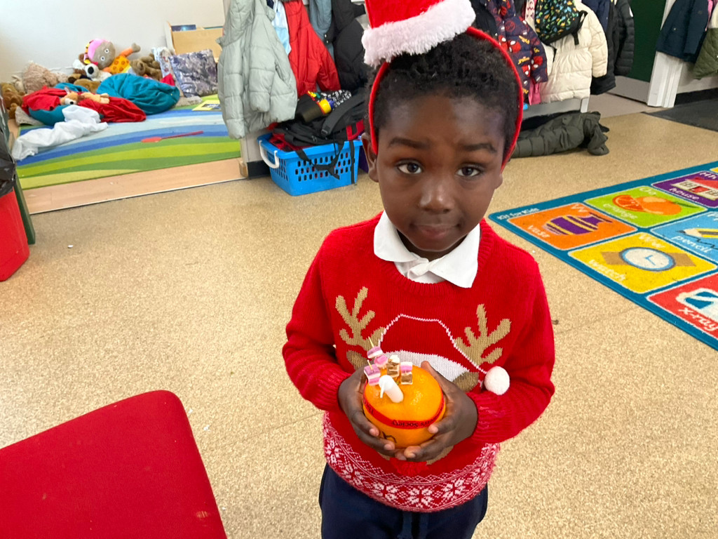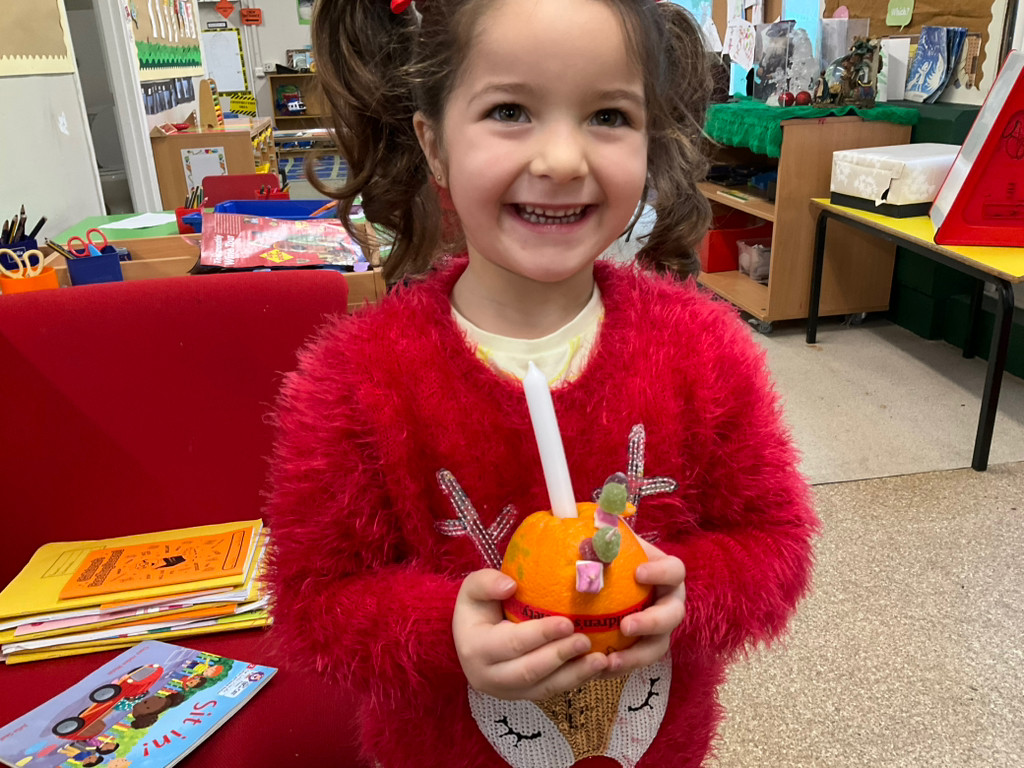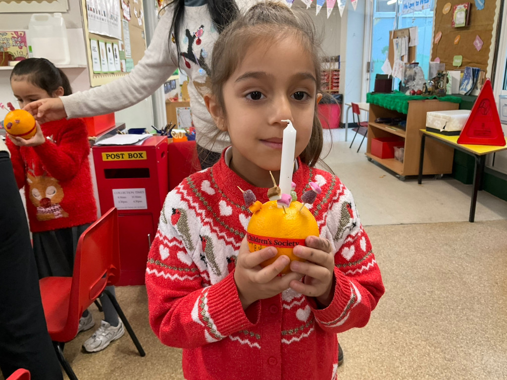 The children were very excited to make their own Christingles at school. They demonstrated good sharing and turn-taking skills and were very proud of what they created. As we walked to the church, the children showed good listening and awareness of road safety and crossing rules. At the church, they performed beautifully with confidence for everyone. We are very proud of them.