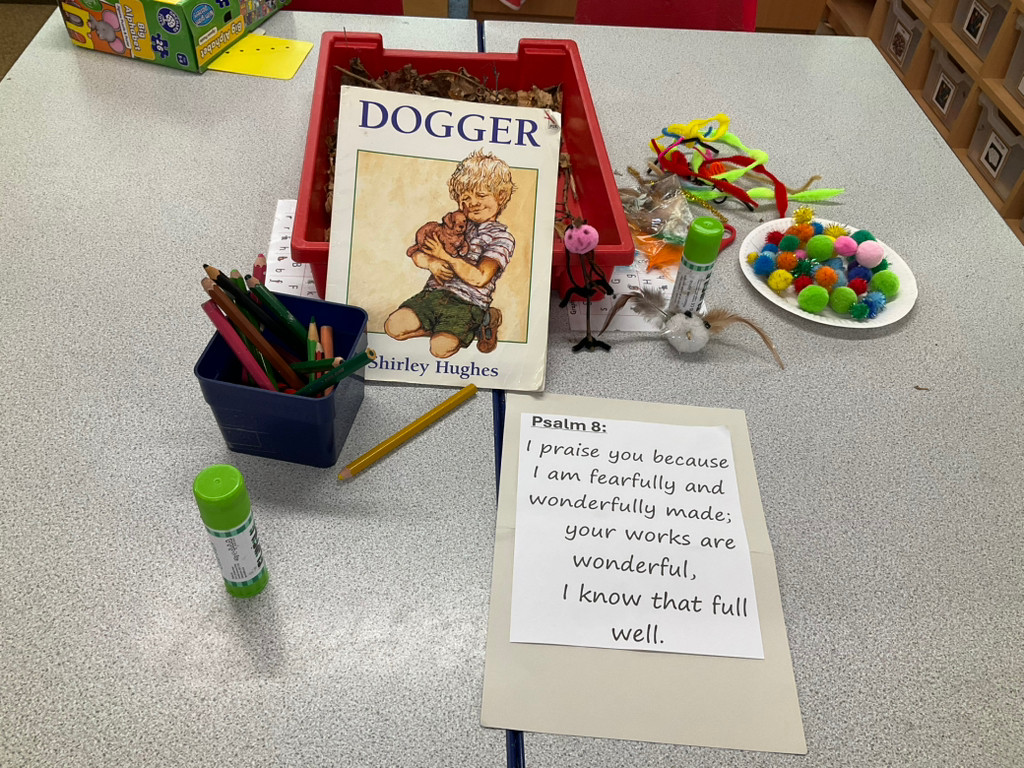 In RE, we have been learning about things and people who are special to us. We read the story Dogger by Shirley Hughes and talked about what was special in the story. Dogger was special to Dave because he was his favourite toy, and losing him made Dave feel sad and worried. When Dave found Dogger again, he felt happy and excited.