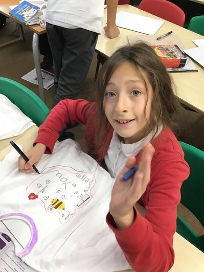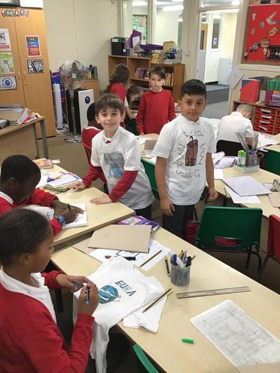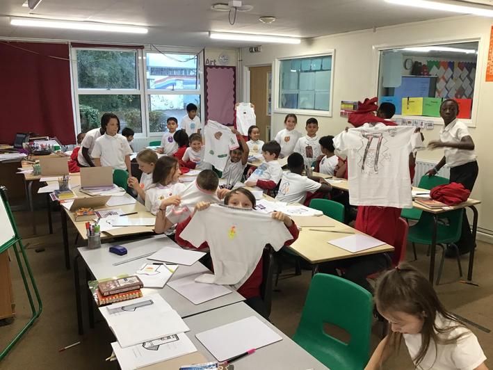 It's been an action-packed couple of weeks: we have started the topic of Travel Writing in English, neared the end of our addition and subtraction unit in Maths, invented games to understands rewards and responsibilities in PSHE, learned to talk about the weather in Spanish, and much else besides. The most photogenic lesson, though, was surely when we made T-shirt designs in DT. The children had designed their own logos for imaginary companies, which they brough colourfully to life:
