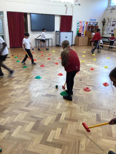 The beginning of a new half-term has brought a range of new topics: 'Magnificent Mountains' in Geography, 'La Classe' in Spanish, and 'Creation and Science' in RE. The children wrote verbally dextrous spoken word poems, and sharpened their skills with fractions in Maths. The children particularly impressed with their delicated putting skills as they started golf in PE, as pictured below: