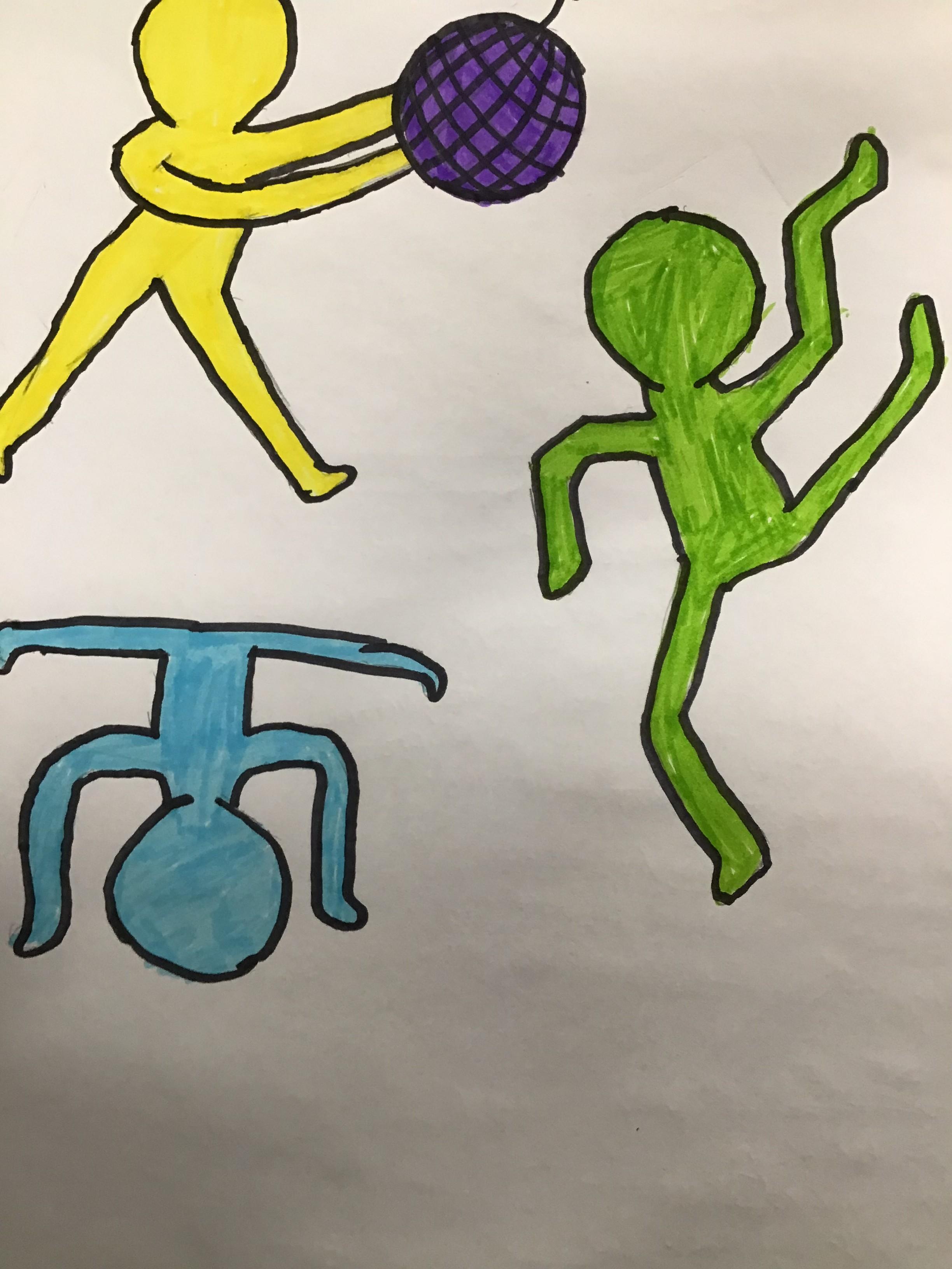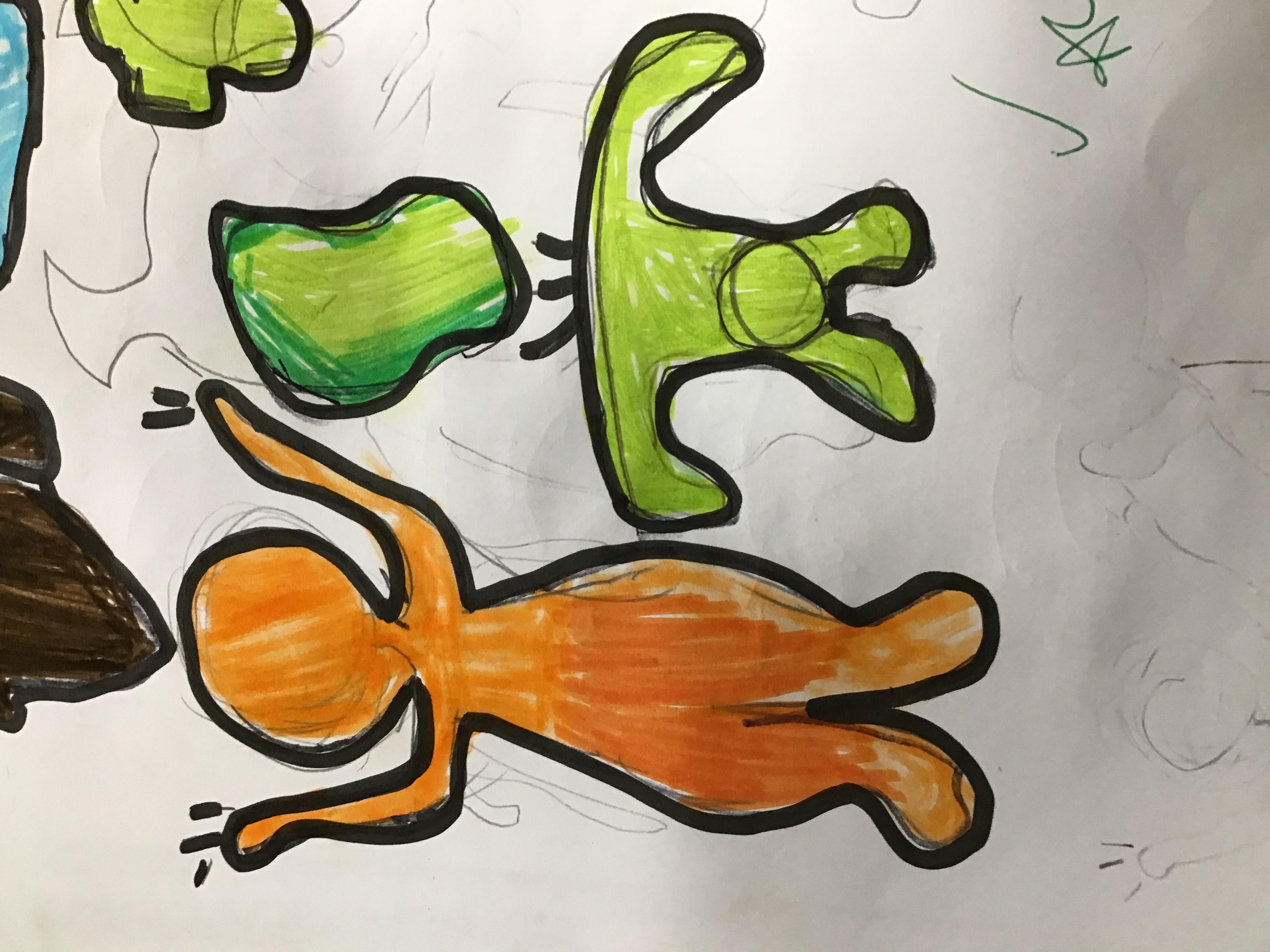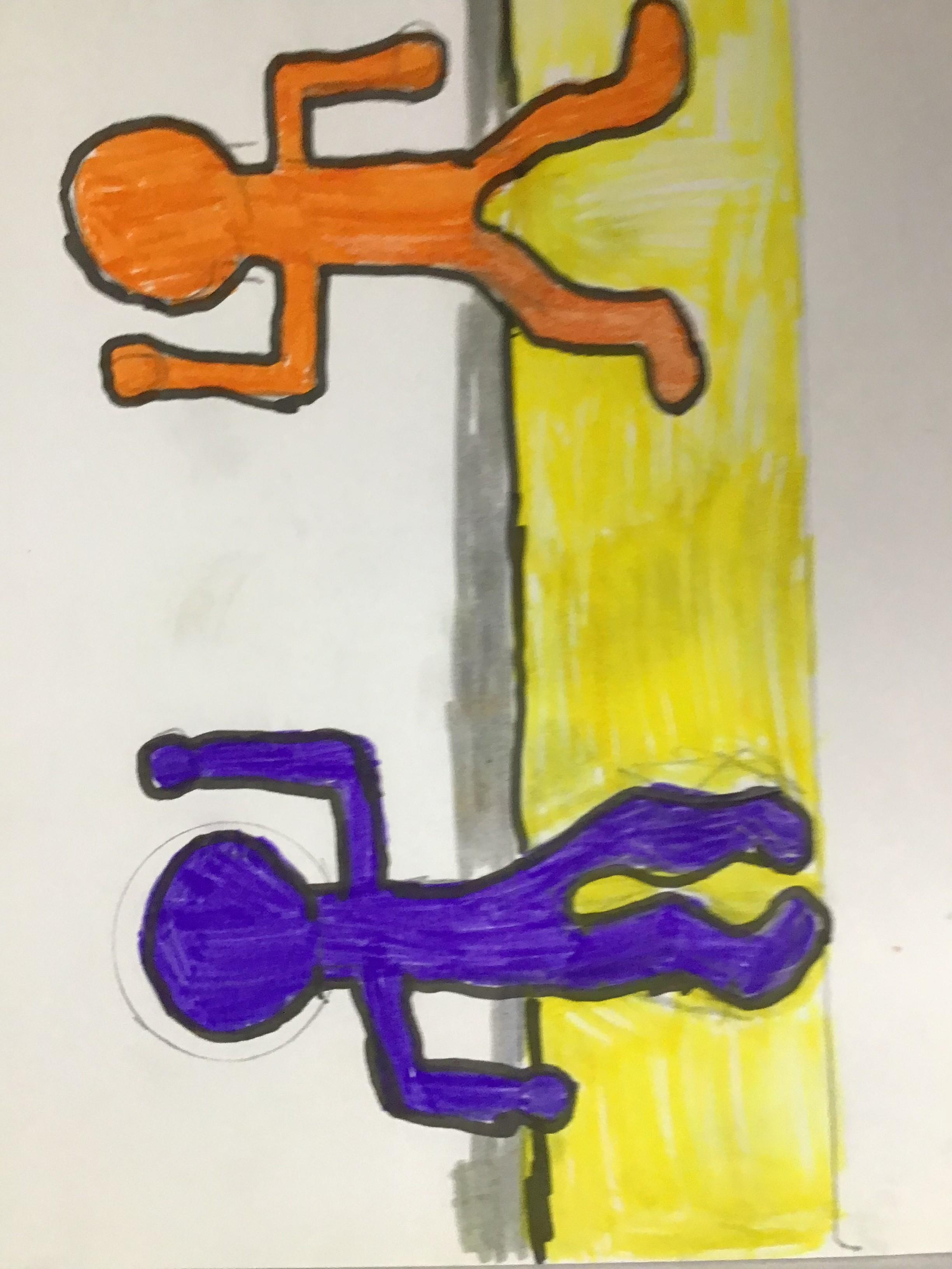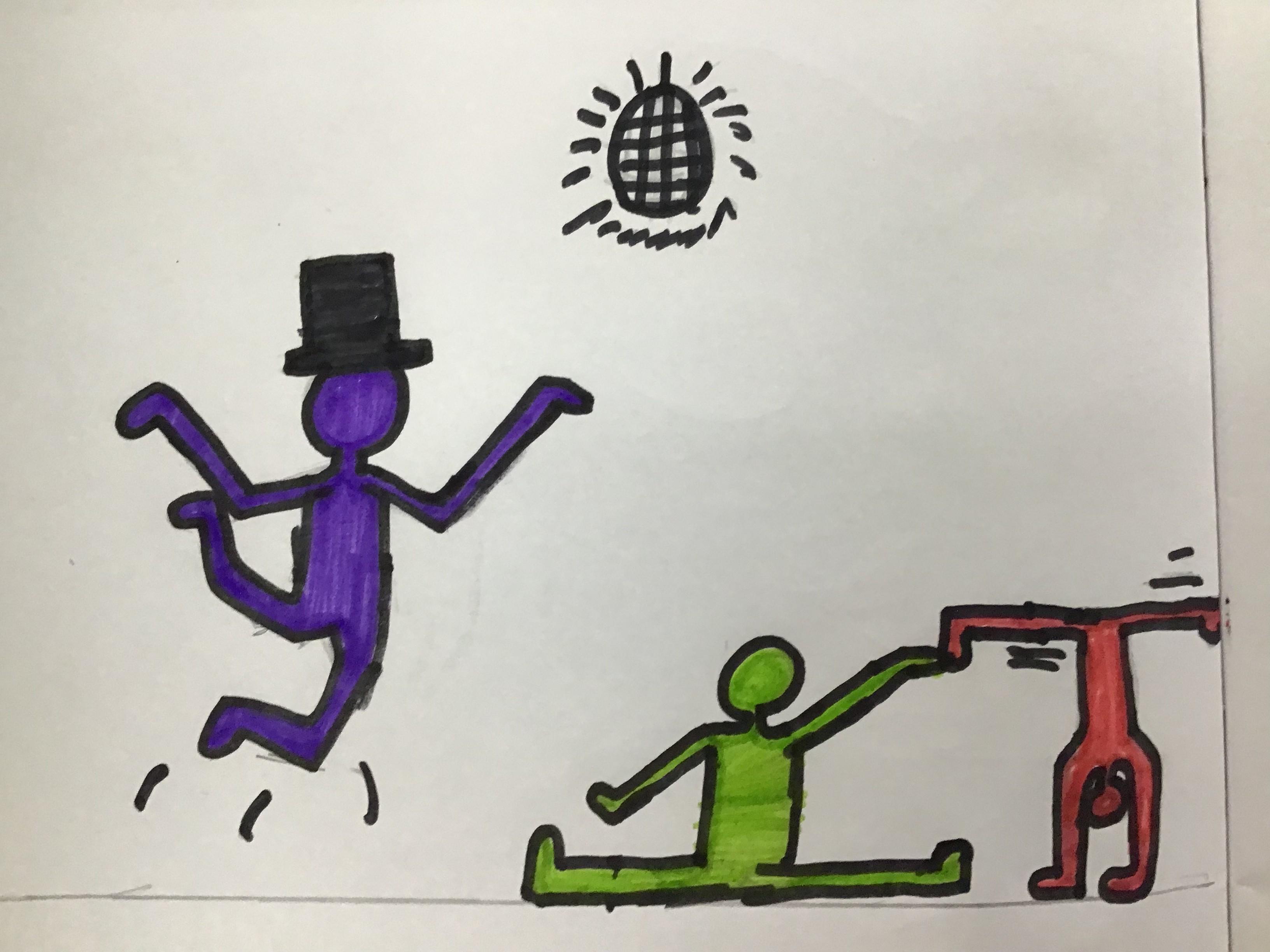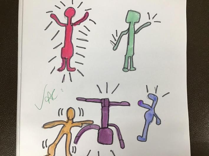 Science week witnessed some spectacular results when the children experimeted with irreversible changes, observing the effect of mixing baking powder and vinegar. They also played a treasure-hunt style game with drawings of camouflaged Moths in order to understand the adaptation of species to environments. However, as we started our new Art topic (focussed on colour), this week would be a good time to showcase the childrens' artwork (in this case based on the graffiti, sculpture and painting of modern artist Keith Haring).