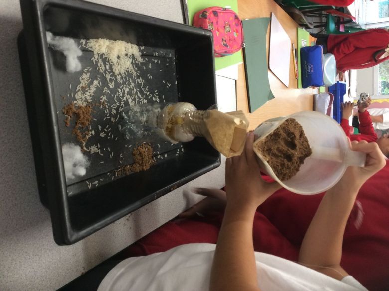 This term, in Science, the children have been learning about materials and filtering as well as water filters used in space. They had a go at making their own water filters using materials like rice, sand, cotton and cloth. They used the filter to filter particles from muddy water. This taught them about the different sized holes between materials which block big particles but allow smaller particles to pass through.