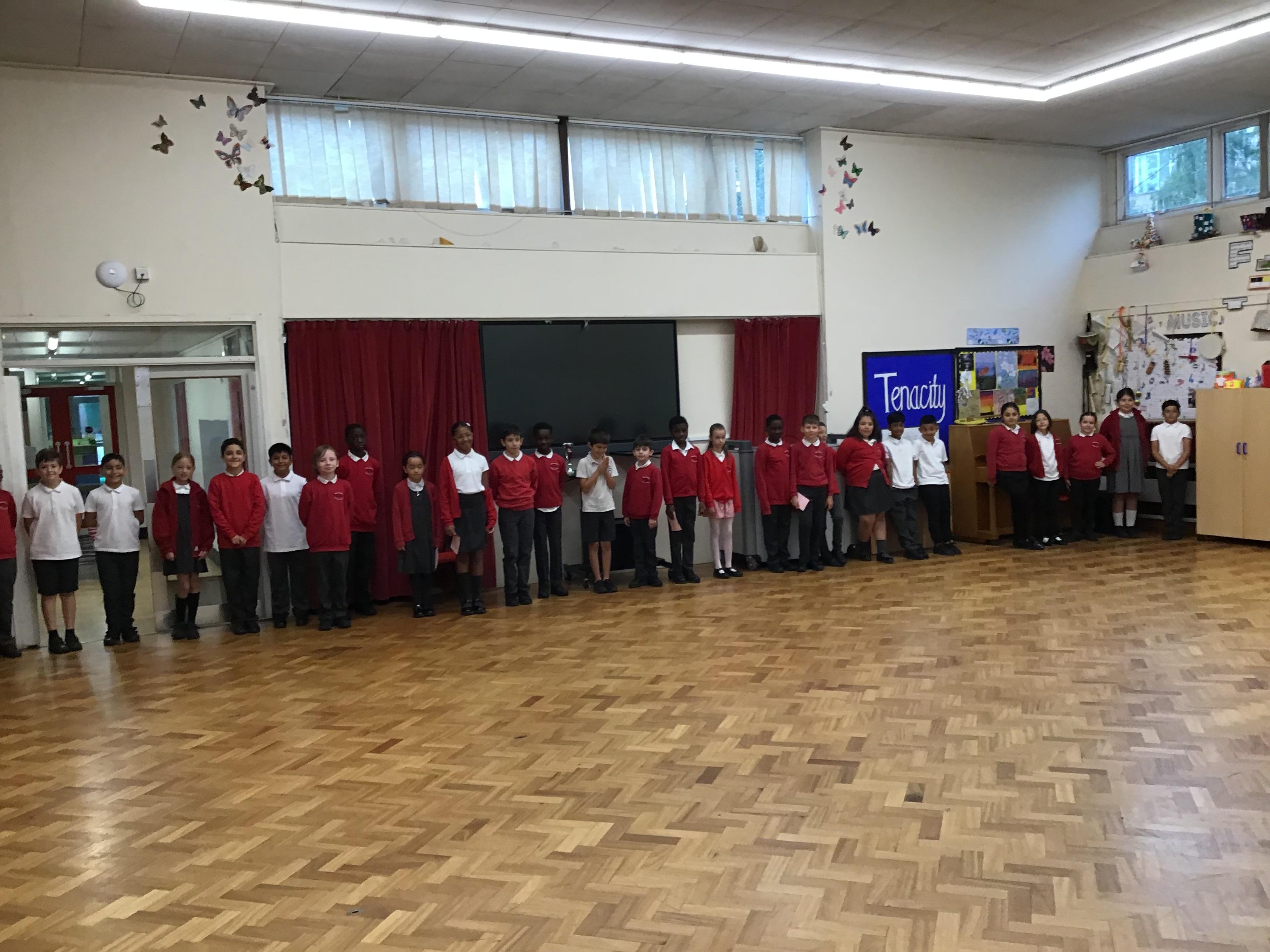 For our first entry of the year on our class page, we have photos of the class' performance of their BRIGHT assembly. The children did a lovely job explaining the meaning of the acronym BRIGHT, which expresses our school values (Belief, Resilience, Independence, Grace, Helpfulness and Tenacity). Everyone did tremendously well standing in front of the school and explaining each term.