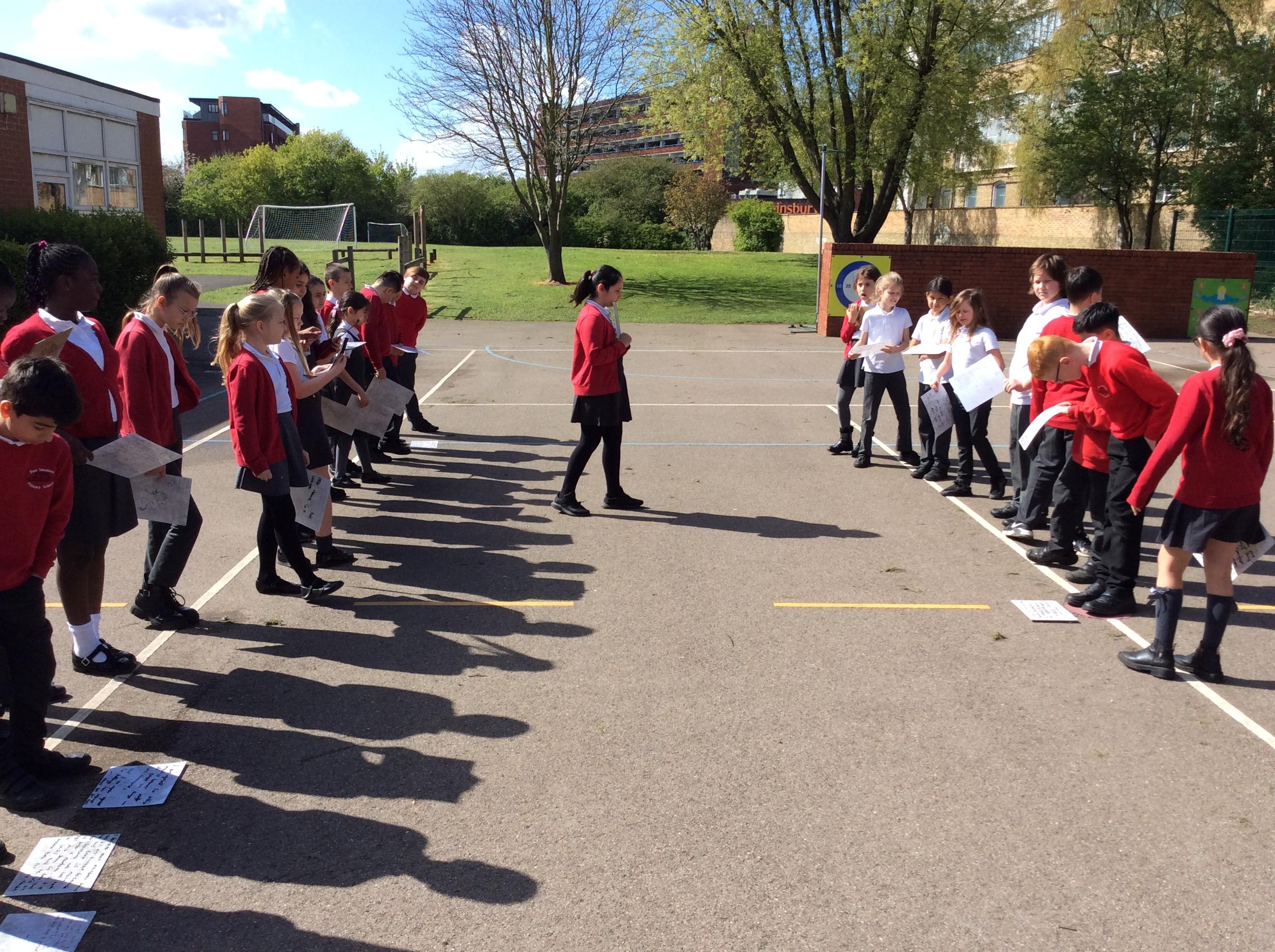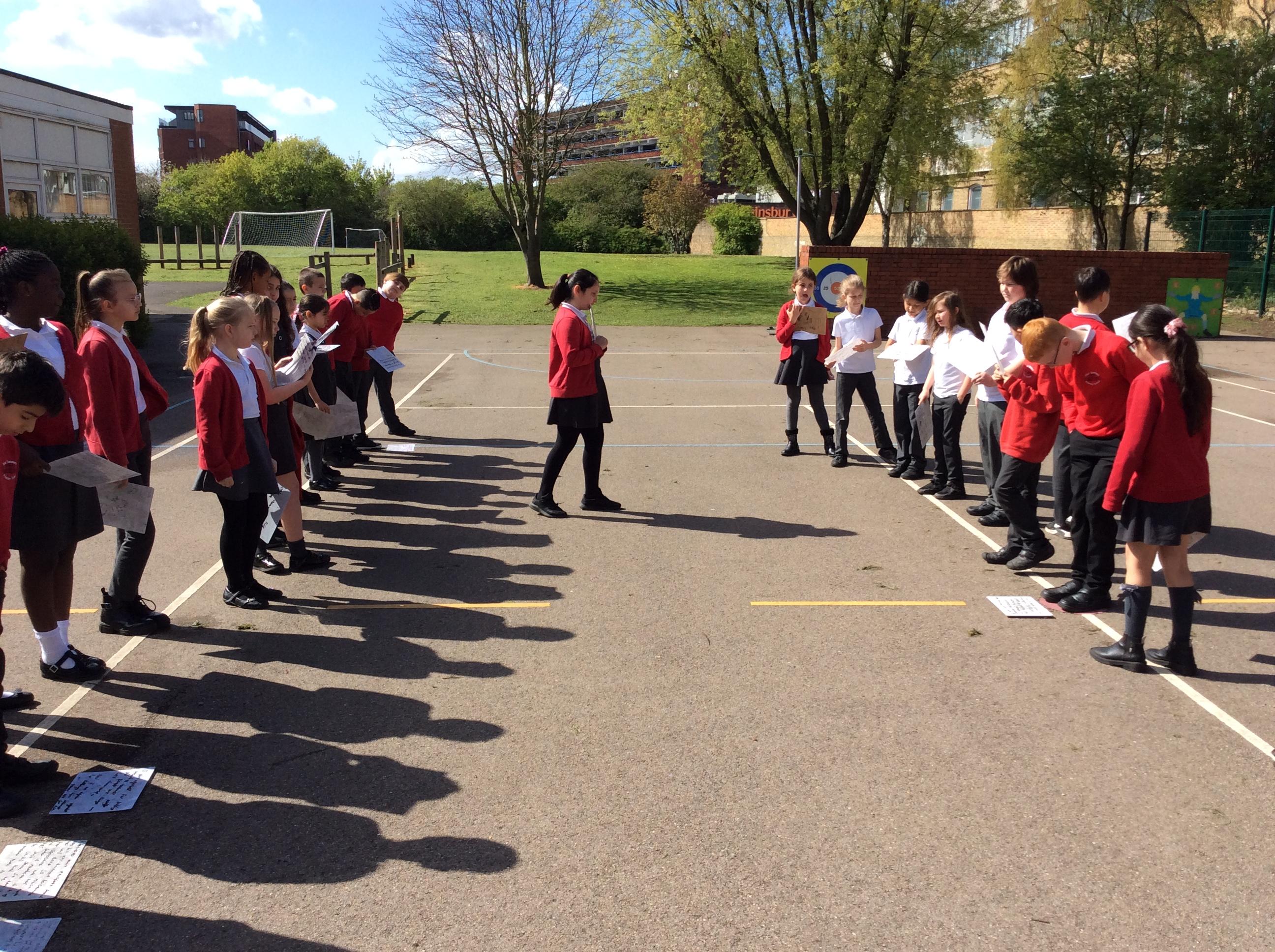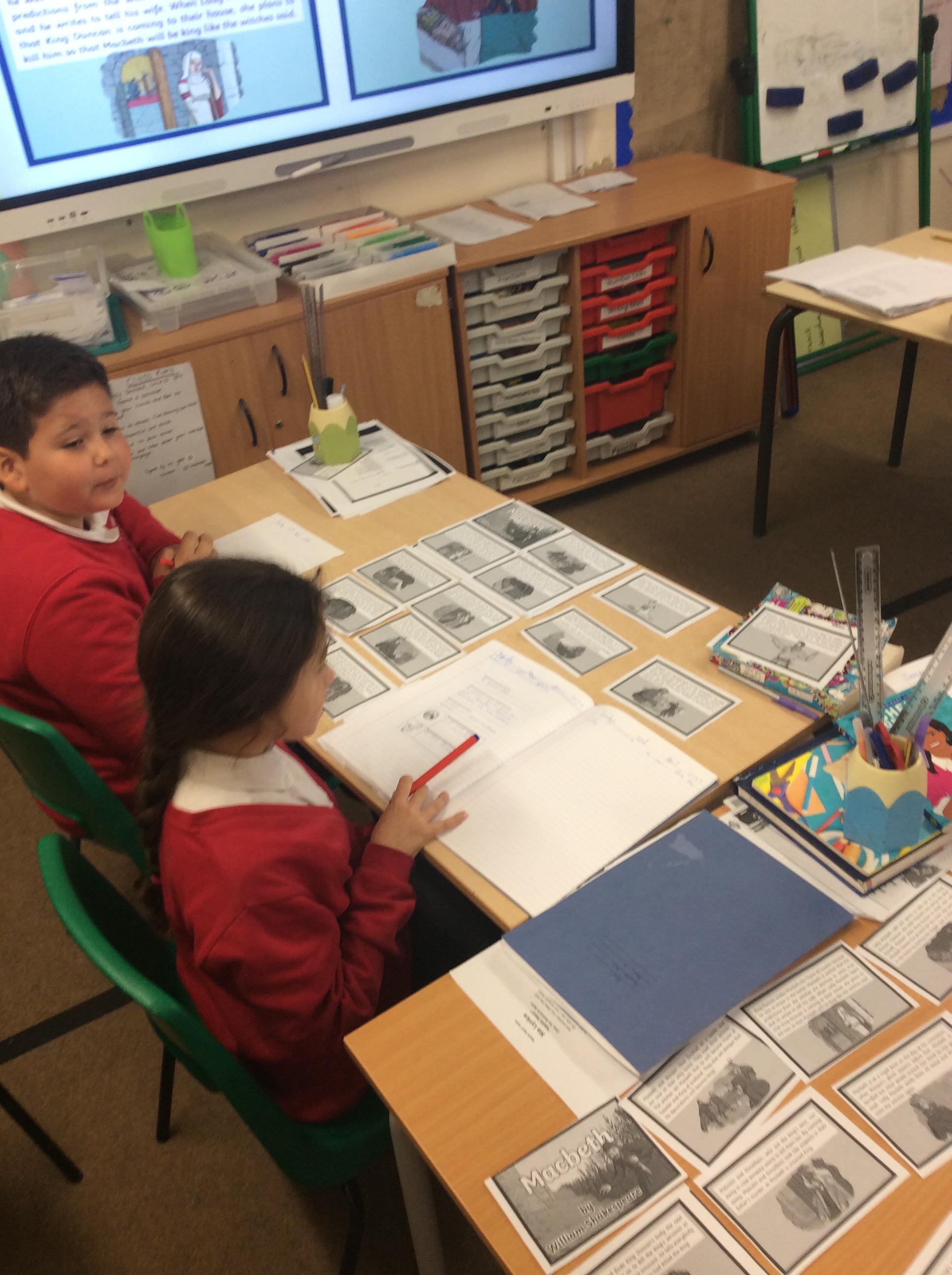 In English, we have just started a new unit focusing on William Shakespeare's Macbeth. We were exploring whether Macbeths should or should not kill King Duncan in order to become king. Children decided whether they were for or against the argument and then said aloud their argument in a conscience alley.