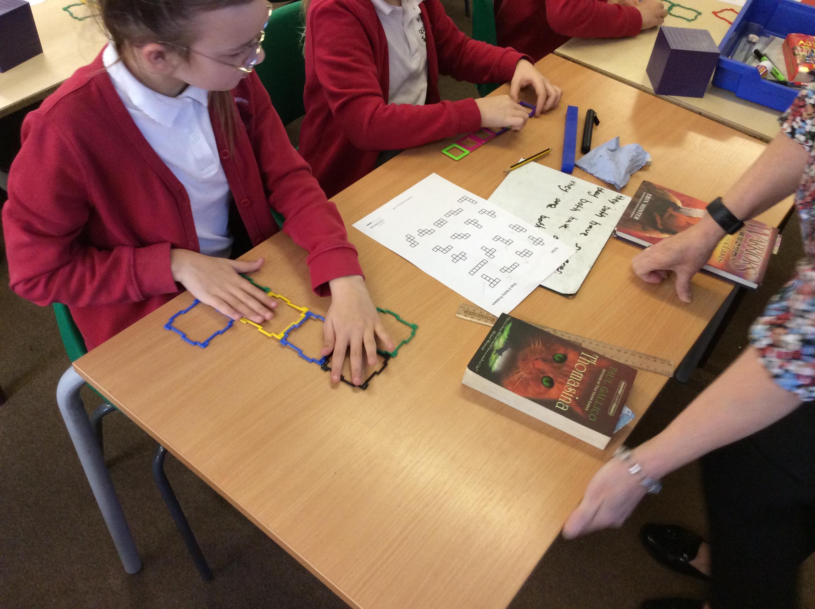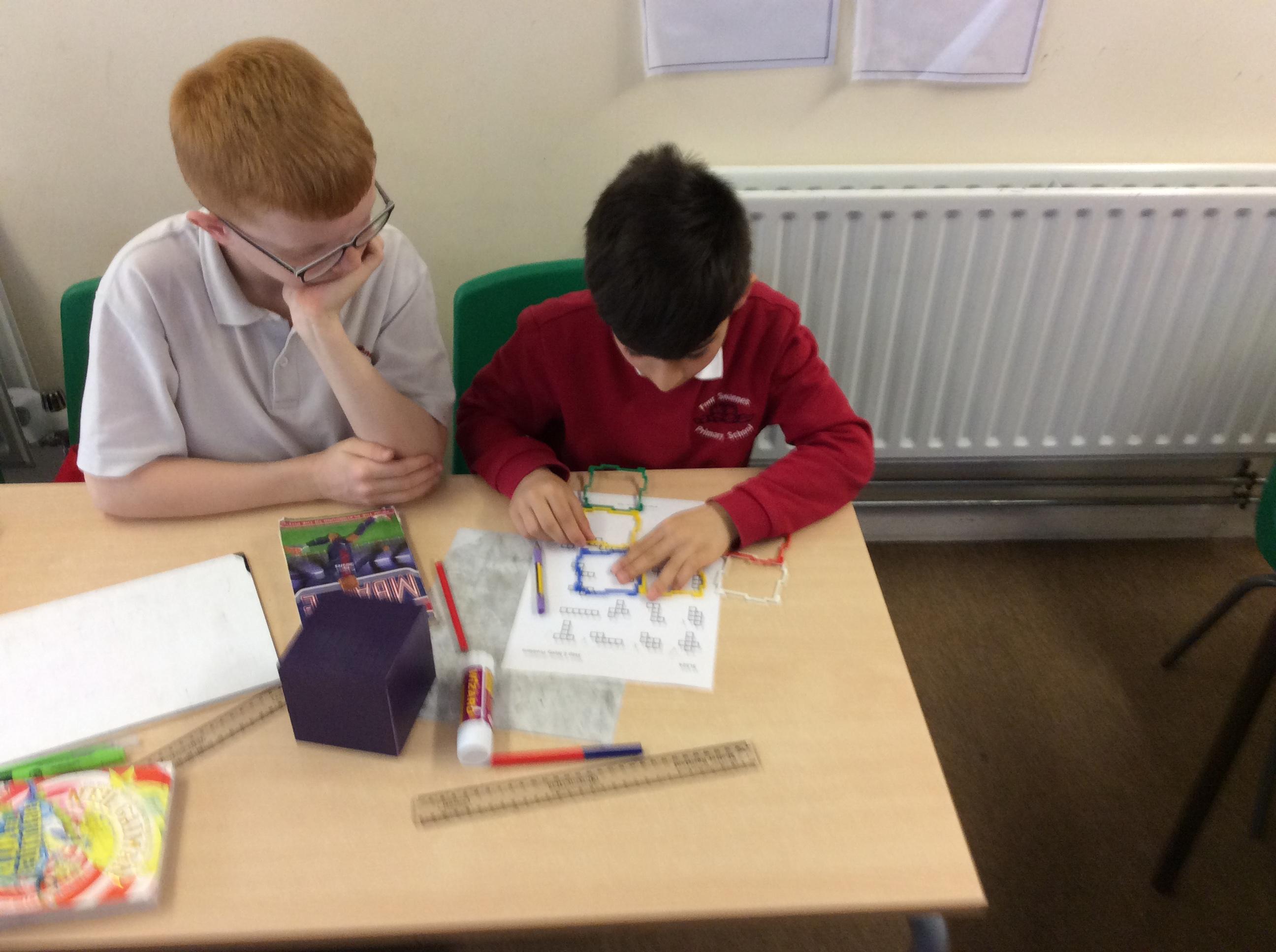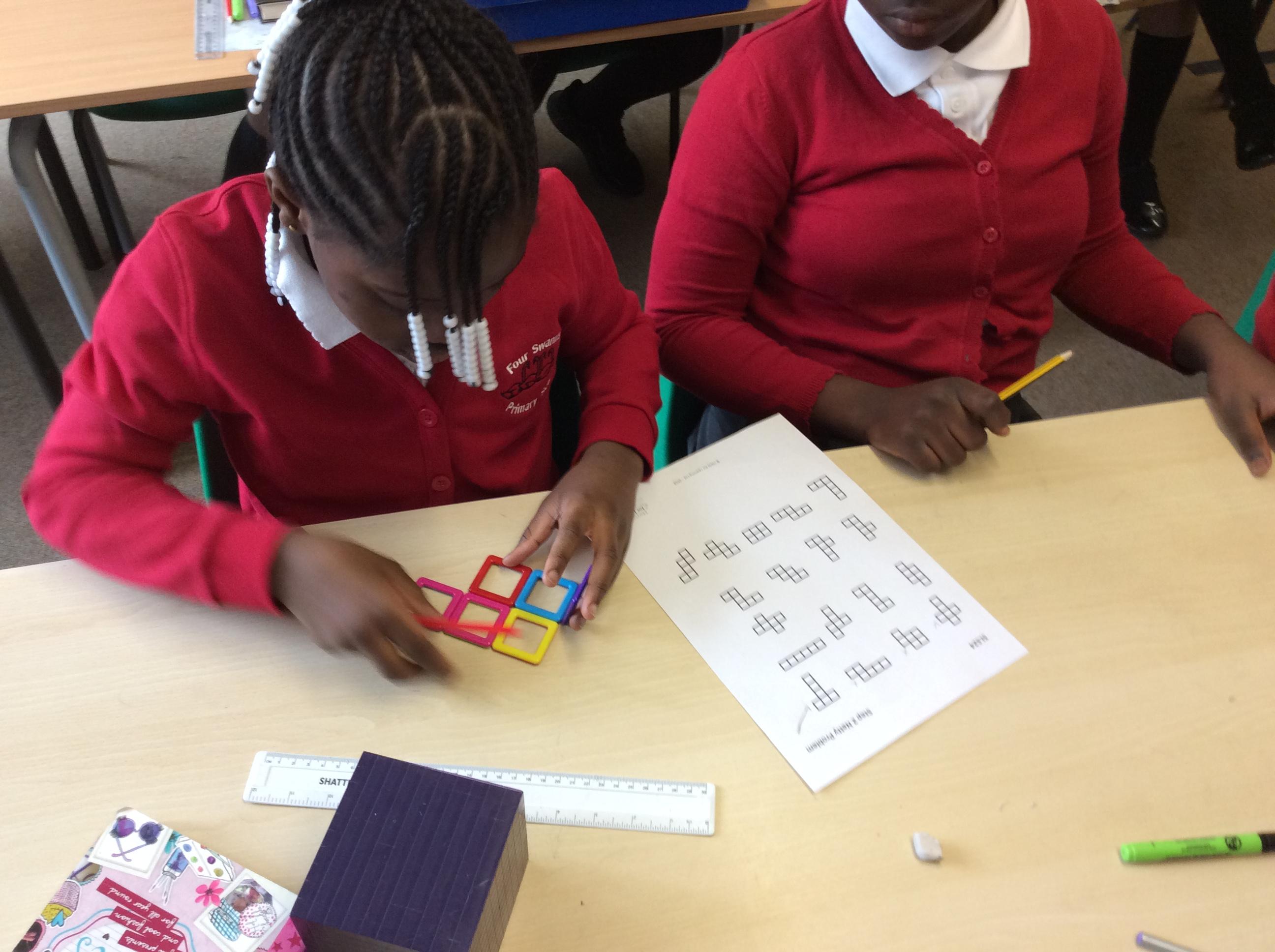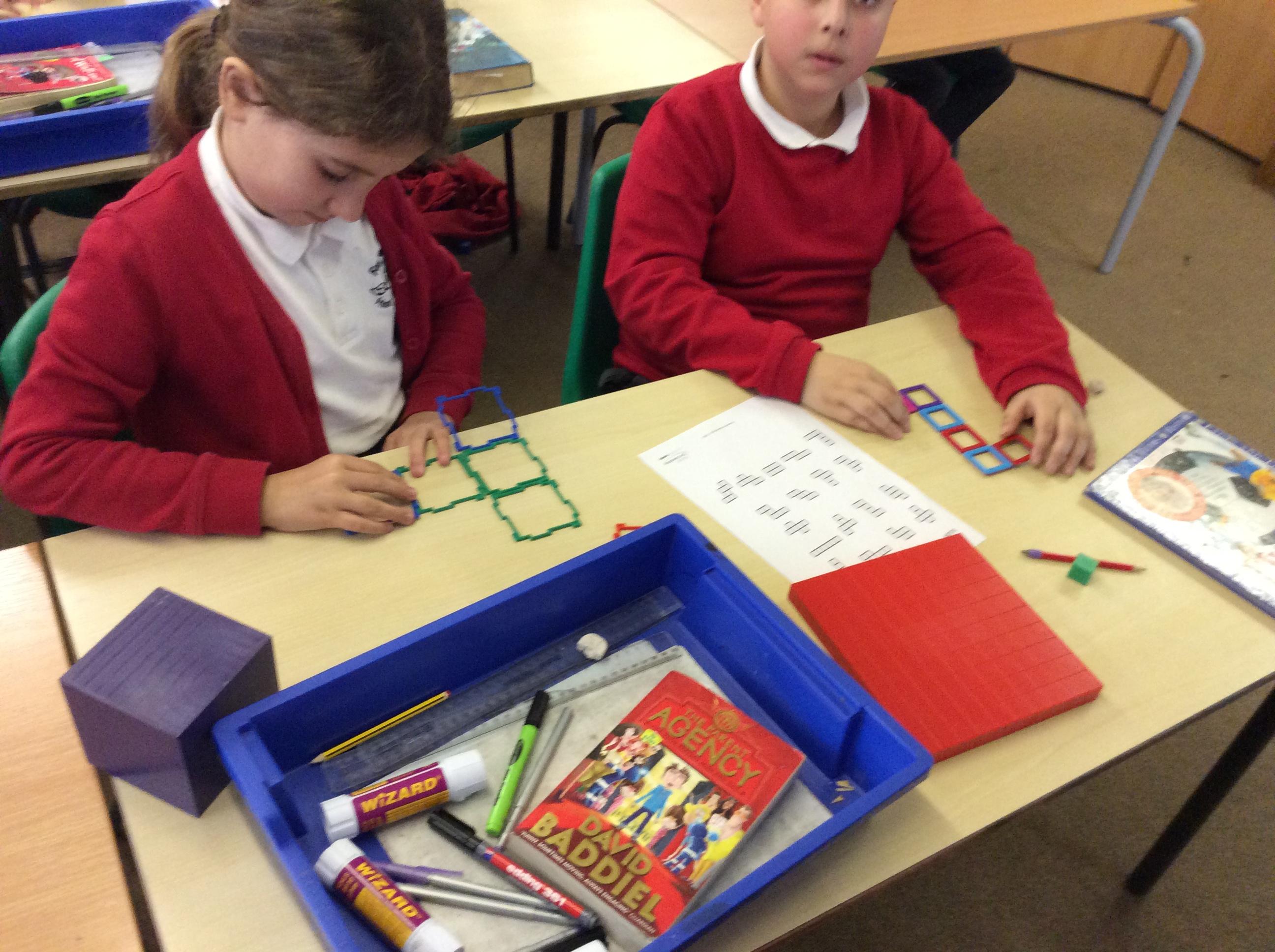 In Maths this week, we have been focusing on shape and looking at nets. We used apparatus to investigate which nets made a cube and which didn't. From this, we were able to reason as to what properties were needed to make the net of a cube.
