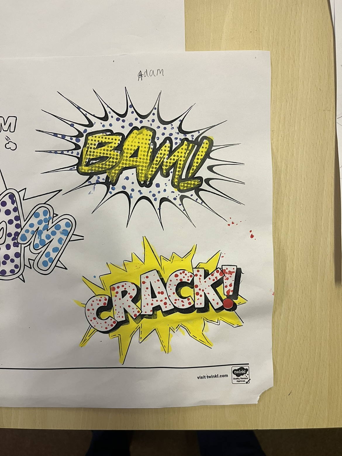 One example was their use of dots. We used bold colours to fill our onomatopoeiac words.