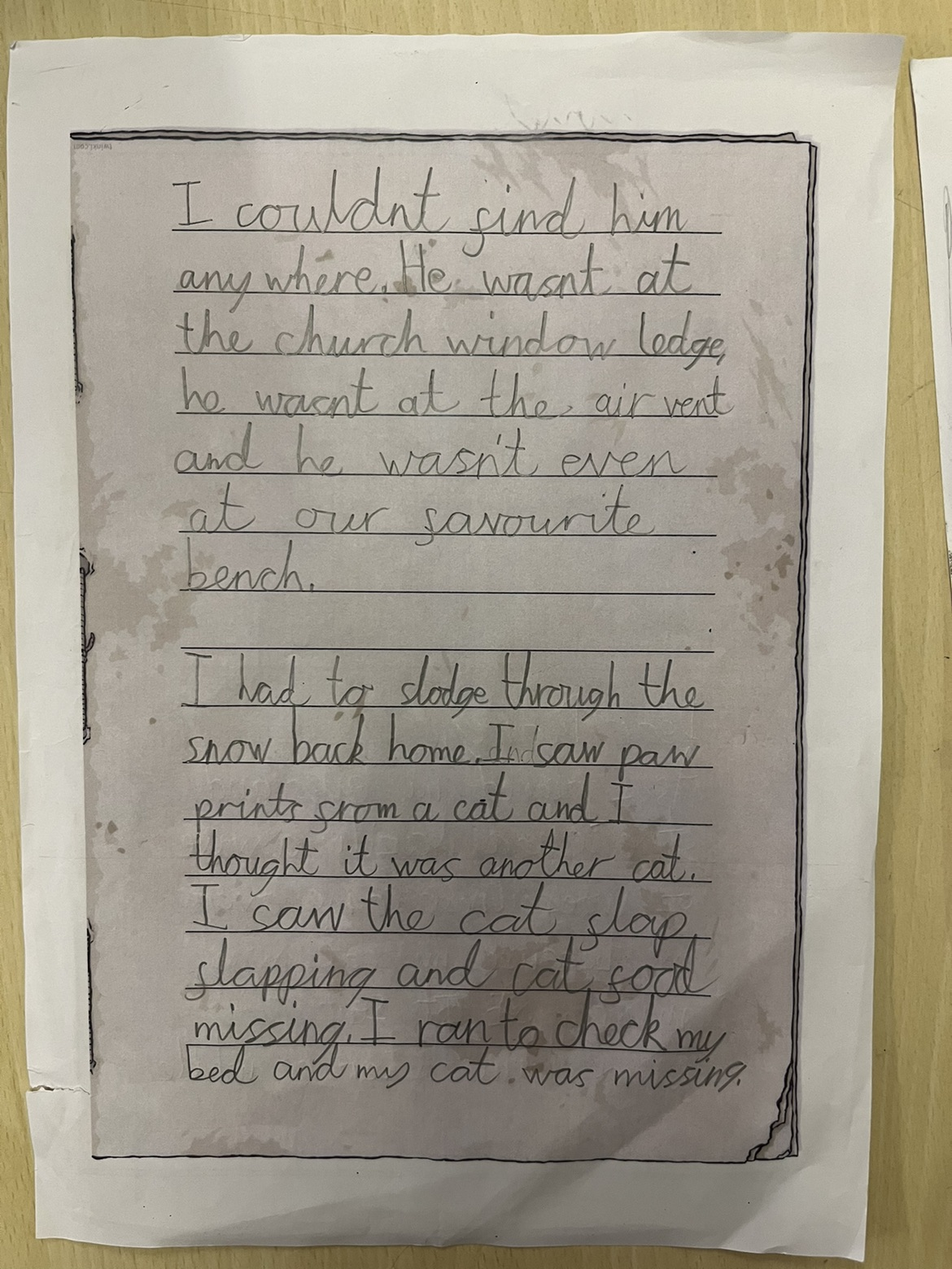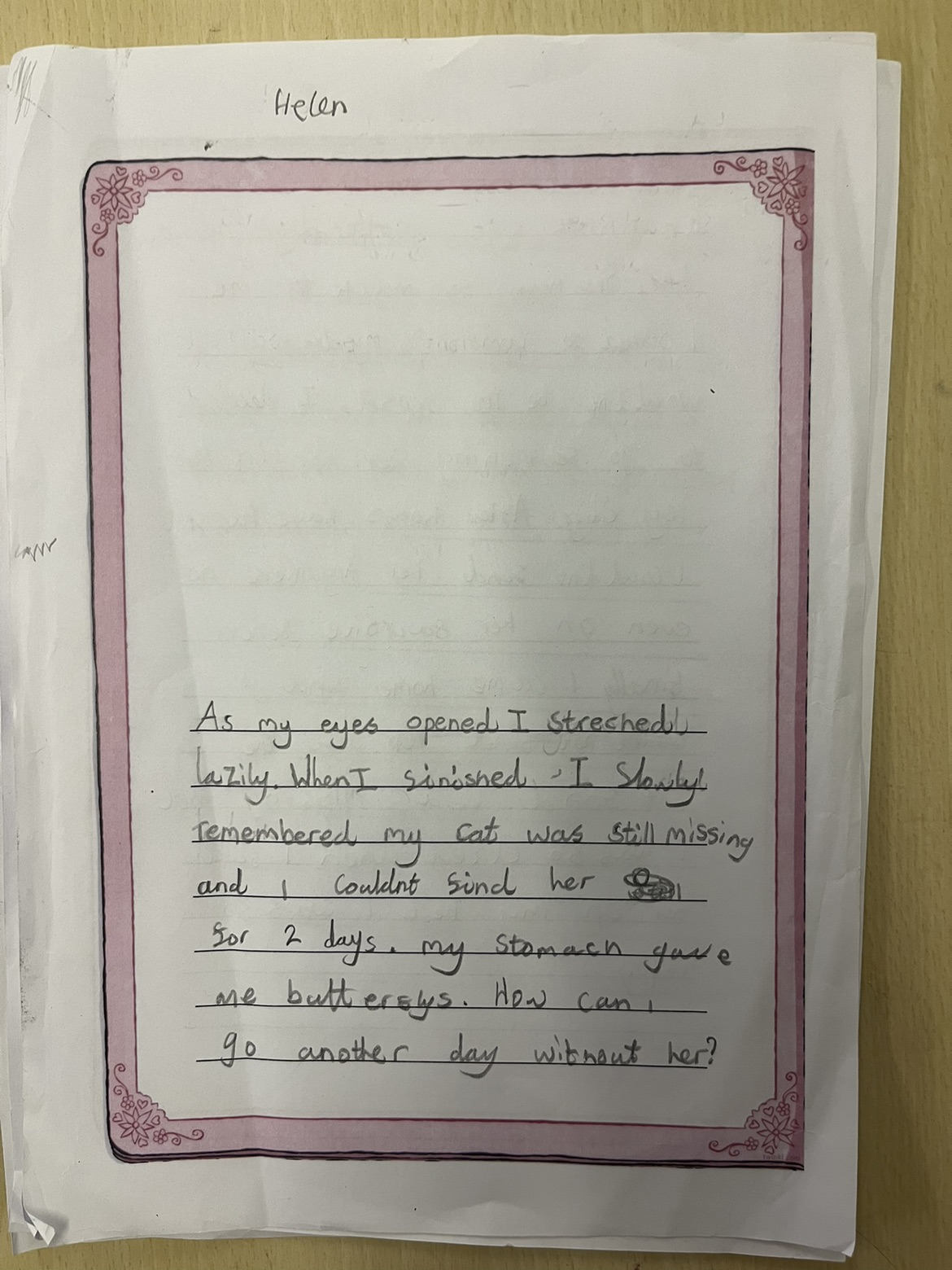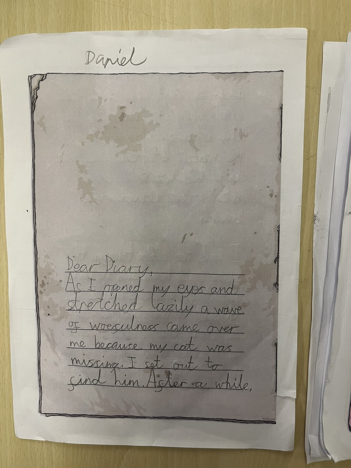 For our final piece of work, we wrote a diary entry in the role of the main character loosing her cat.