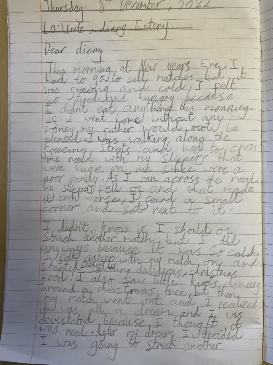 This week, Year 5 have been reading the Little Match Girl and created some wonderful diary entries. It is a story that generated lots of meaningful conversations.