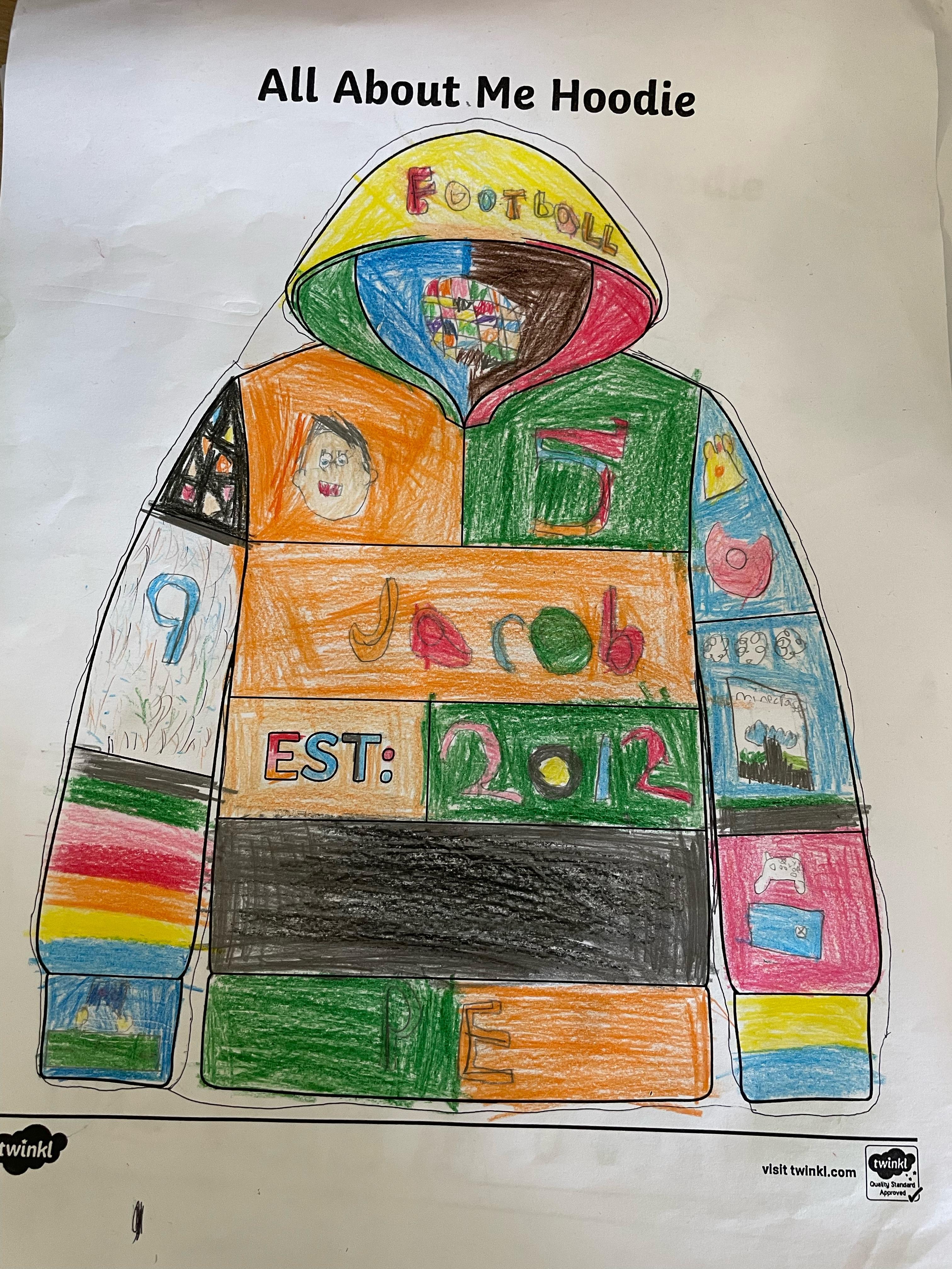 We have had an exciting week getting to know each other in Y5. We completed 'All About Me Hoodies' and looked at our outer and inner selves to create lovely pieces of artwork for our display.